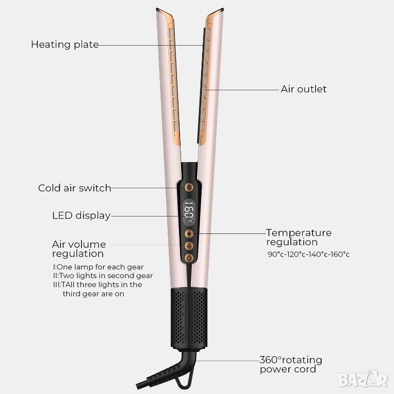 Този продукт не е оригинален продукт на Dyson, а алтернативен модел, създаден по подобие на технологията за въздушно изправяне.