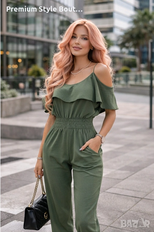 Добавете свежест и женственост към гардероба си с този стилен зелен гащеризон с тънки презрамки. Моделът е с елегантна обгръщаща се яка и свободна кройка, която осигурява комфорт и лекота при движение. Изработен от висококачествена Aerobin материя, гащеризонът предлага охлаждащ ефект и е изключително подходящ за топлите дни. Тъканта е лека и приятна на допир, което го прави идеален избор за ежедневие, разходки или стилни летни визии. Моделът е едноцветен, със стандартна дължина и Slim прилягане в горната част, което балансира свободния силует. Двойните джобове добавят практичност, а изчистеният дизайн позволява лесно комбиниране както с токчета, така и със сандали или кецове. Перфектен избор за жени, които търсят комфорт, стил и модерно излъчване в едно. Характеристики на продукта Цвят: Зелен Тип продукт: Едноцветен гащеризон Материя: Aerobin Ефект: Охлаждащ ефект Тип ръкав: Тънки презрамки Яка: Обгръщаща се яка Кройка: Свободна Прилягане: Slim Дължина: Стандартна Джобове: Двойни джобове Колан: Без колан Повод: Стилен / ежедневен Устойчивост: Не е посочена