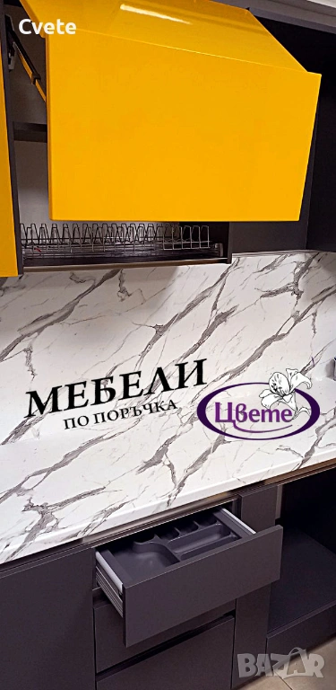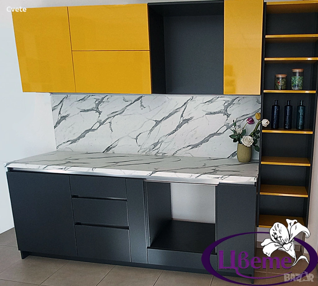 Кухня Графит без дръжки и с жълтичко за свежест