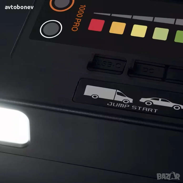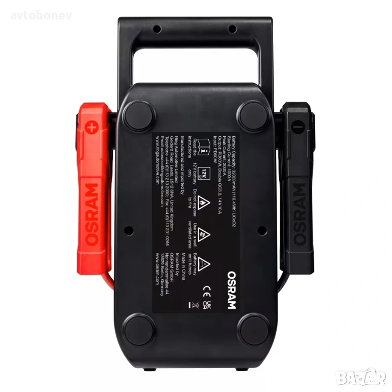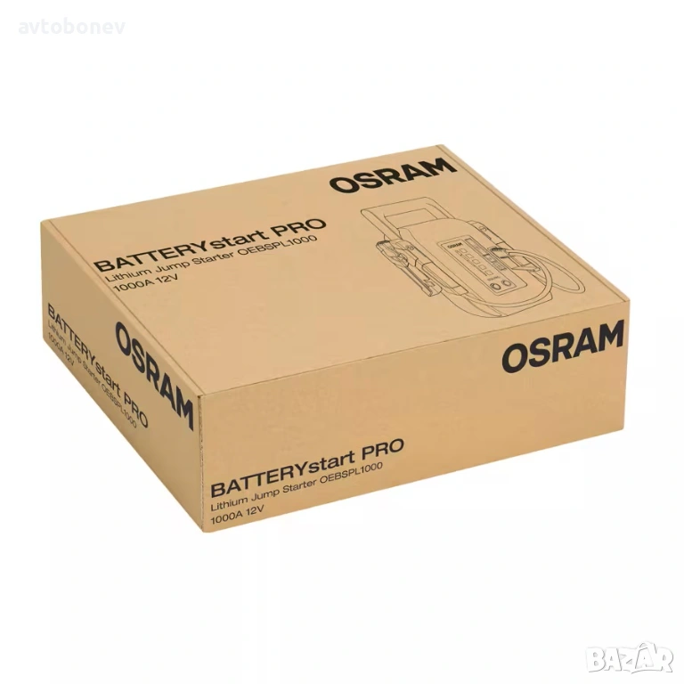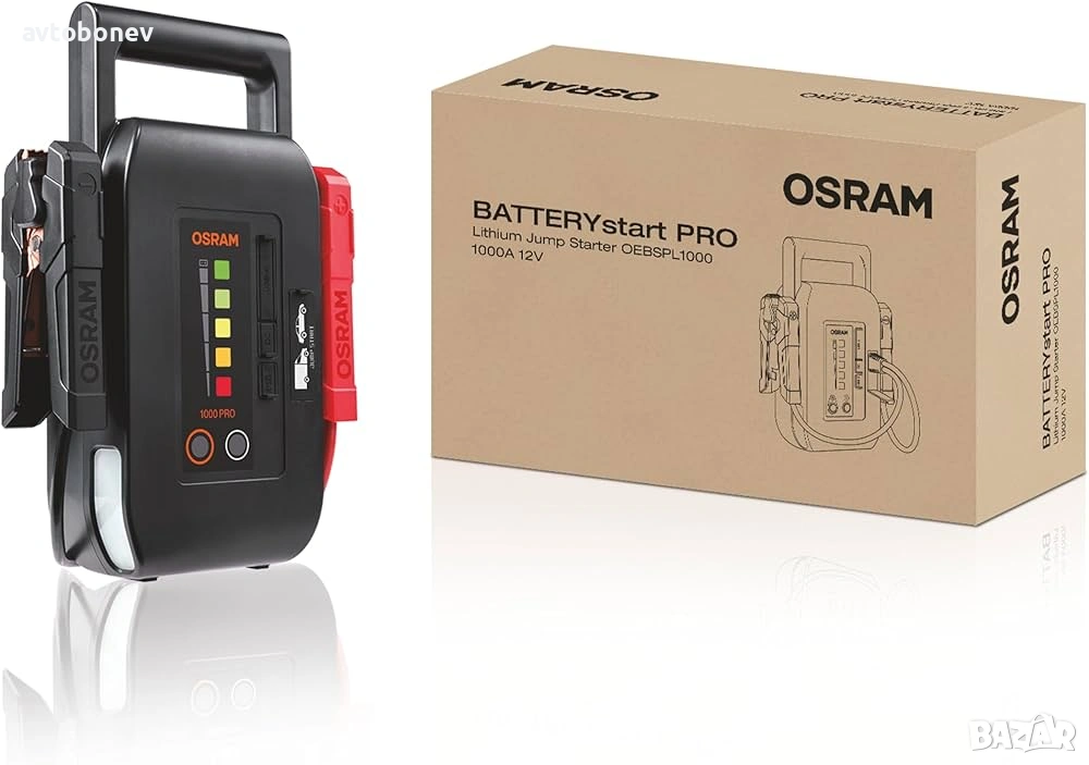 OSRAM BATTERYstart PRO 1000 е компактно и мощно устройство за бързо стартиране на двигатели(booster/jump starter) с функция power bank и вградена аварийна лампа - за професионална употреба. Разполага издръжлива и достатъчно мощна литиево-йонна кобалтова (LiCoO2)батерия от най-ново поколение. Проектирано за многократна употреба, ще стартира всички автомобили с бензинови двигатели и автомобили с дизелови двигатели с работен обем до 10 литра. Много по-малък по размер в сравнение с традиционните оловно-киселинни стартери, BATTERYstart PRO 1000 е със 75% по-лек от традиционните оловно-киселинни стартери, но въпреки това осигурява висока производителност и безопасна мощност. Включва интелигентно създадени предпазни скоби за управление на захранването между стартера и превозното средство, като по този начин се поддържа безопасността на потребителя. Защита при обратна полярност, защита от късо съединение и пренапрежение. Здравата и издръжлива конструкция от поликарбонат прави BATTERstart PRO 1000 идеален за сервизна употреба. Устройството може да се презарежда чрез стандартно fast charge зарядно устройство за около 4 часа, или около 1.5ч.посредством бързо чрез зарядно устройство PD60W (не е включено в комплекта).