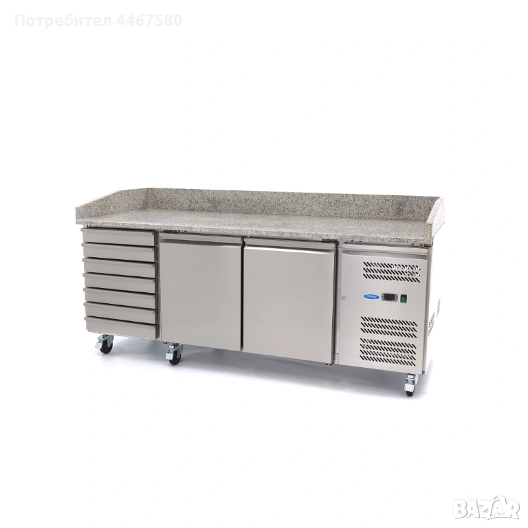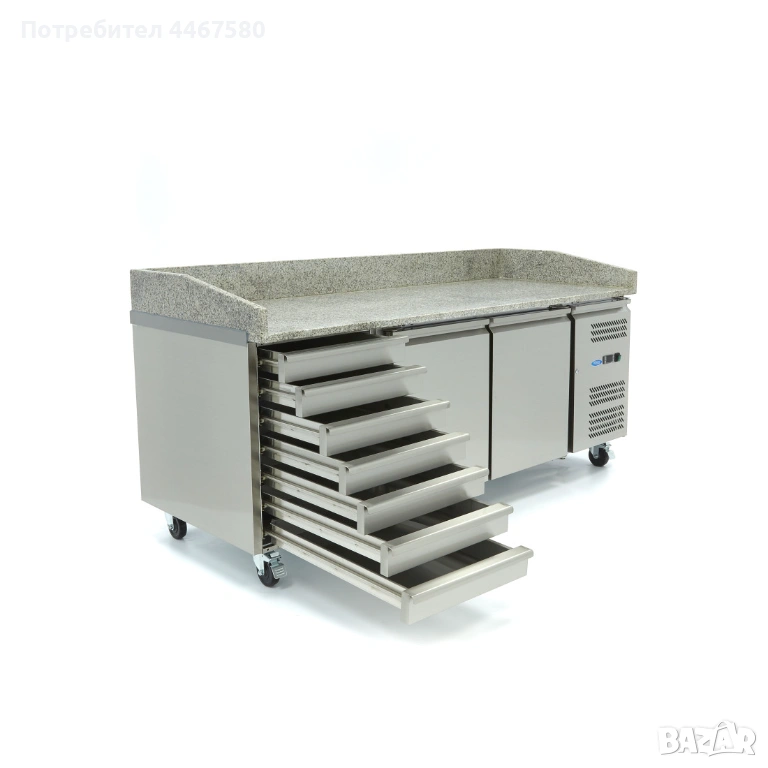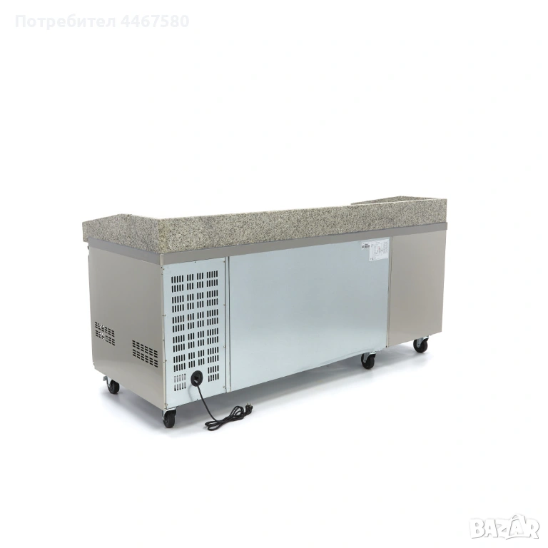 Професионална охлаждаема пица маса с гранитен плот – оптимално решение за пицарии, пекарни и ресторанти с интензивно натоварване. Осигурява постоянна температура на съставките чрез вградени хладилни отделения и охлаждаема салатиера GN контейнери. Гранитната повърхност поддържа тестото стабилно и улеснява работата. Подобрява хигиената, скоростта и качеството на продукцията. Обадете се сега за оферта и наличности. Доставка над 250€ – безплатна.