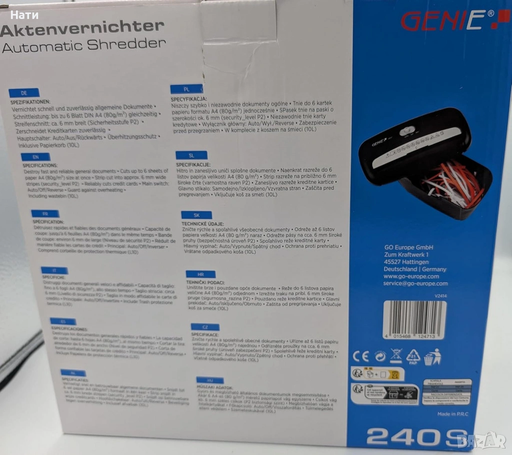 Професионален шредер за документи Genie 240S Гаранция: 12 месеца., снимка 1 - Друга електроника - 53629262 Професионален шредер за документи Genie 240S Гаранция: 12 месеца., снимка 2 - Друга електроника - 53629262 Професионален шредер за документи Genie 240S Гаранция: 12 месеца., снимка 3 - Друга електроника - 53629262 Професионален шредер за документи Genie 240S Гаранция: 12 месеца., снимка 4 - Друга електроника - 53629262 Професионален шредер за документи Genie 240S Гаранция: 12 месеца., снимка 5 - Друга електроника - 53629262 Професионален шредер за документи Genie 240S Гаранция: 12 месеца., снимка 6 - Друга електроника - 53629262 Професионален шредер за документи Genie 240S Гаранция: 12 месеца., снимка 7 - Друга електроника - 53629262 1/7