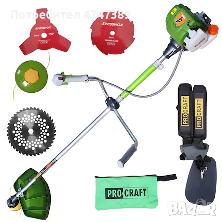 Бензинов тример PROCRAFT T5600 разполага с 4-тактов двигател с мощност 1000 W и обем 37 сm³. Диаметърът на косене с нож е 25.5 сm, а с корда- 41.5 сm. Моторната коса стартира лесно, ускорява бързо, има нисък разход на гориво, ниски вредни емисии и разполага с ергономичен презрамен колан. Регулируемите дръжки имат антивибрационна система и предлагат максимален комфорт. Тримерът се доставя с калъф, два диска, нож, кордова глава и самар.