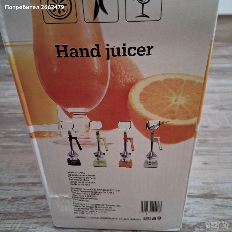 Продавам цитрус преса., снимка 1 - Сокоизстисквачки и цитрус преси - 53629366 Продавам цитрус преса., снимка 2 - Сокоизстисквачки и цитрус преси - 53629366 Продавам цитрус преса., снимка 3 - Сокоизстисквачки и цитрус преси - 53629366 Продавам цитрус преса., снимка 4 - Сокоизстисквачки и цитрус преси - 53629366 1/4