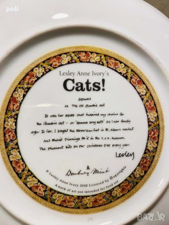 Колекционерска порцеланова чиния за стена Danbury Mint “Cats “. Диаметър 21 см . Цена 20€ .