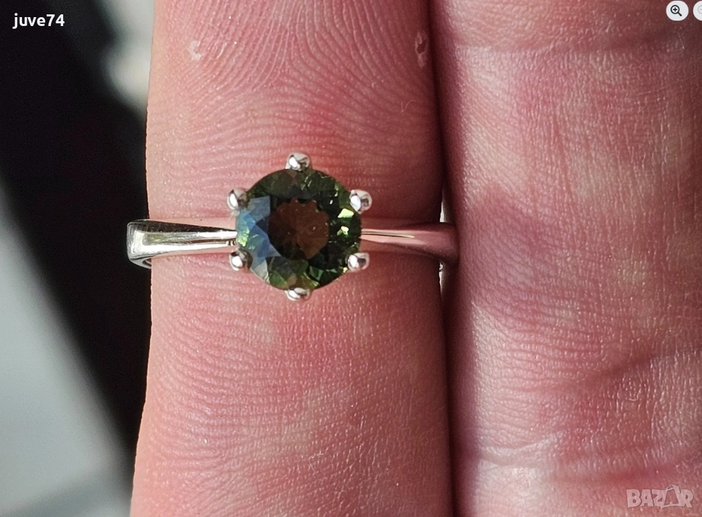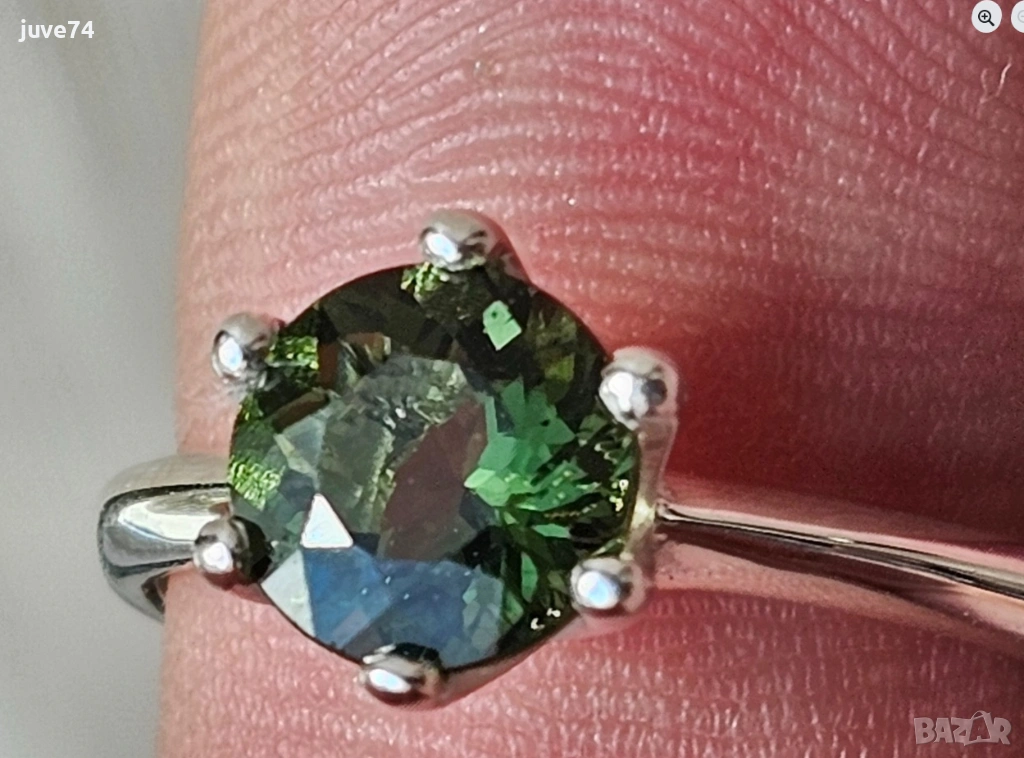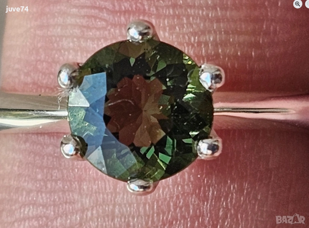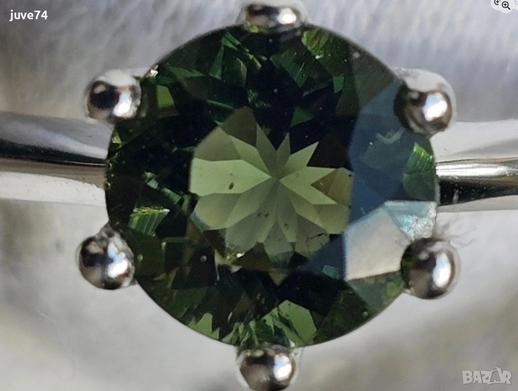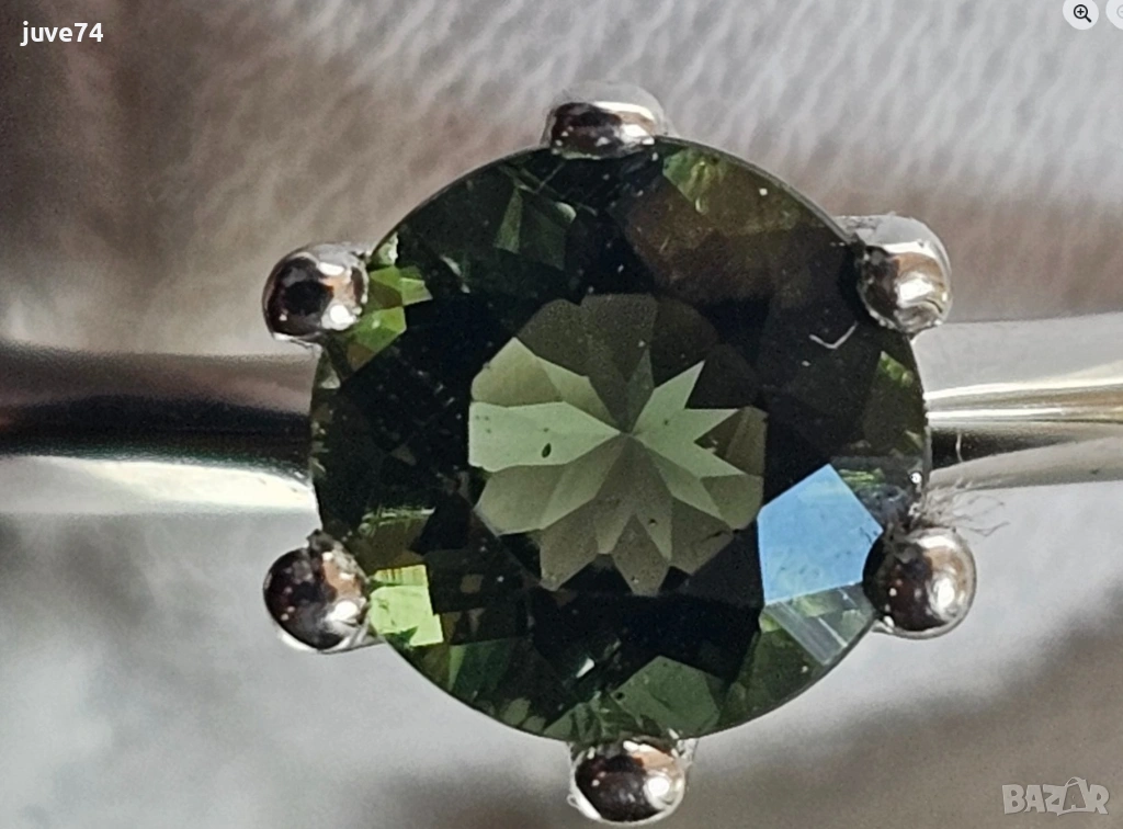 СРЕБЪРЕН ПРЪСТЕН С ФАСЕТИРАН МОЛДАВИТ (ЧЕХИЯ). ОТЛИЧНО КАЧЕСТВО И ЧИСТОТА НА КАМЪКА. ТЕГЛО-1.04 кт. РАЗМЕР-7х7х4.5 мм. РАЗМЕР НА ПРЪСТЕНА-54. ВЪТРЕШЕН ДИАМЕТЪР-17.2 мм. ЦЕНА-95 евро.