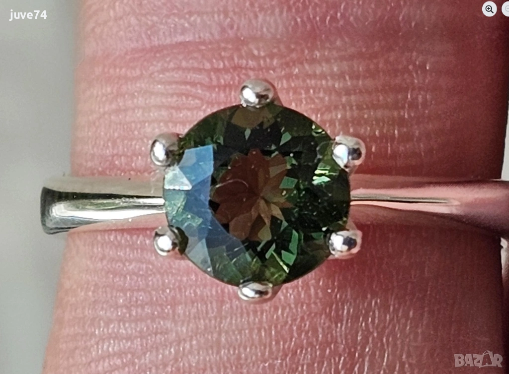 СРЕБЪРЕН ПРЪСТЕН С ФАСЕТИРАН МОЛДАВИТ (ЧЕХИЯ)