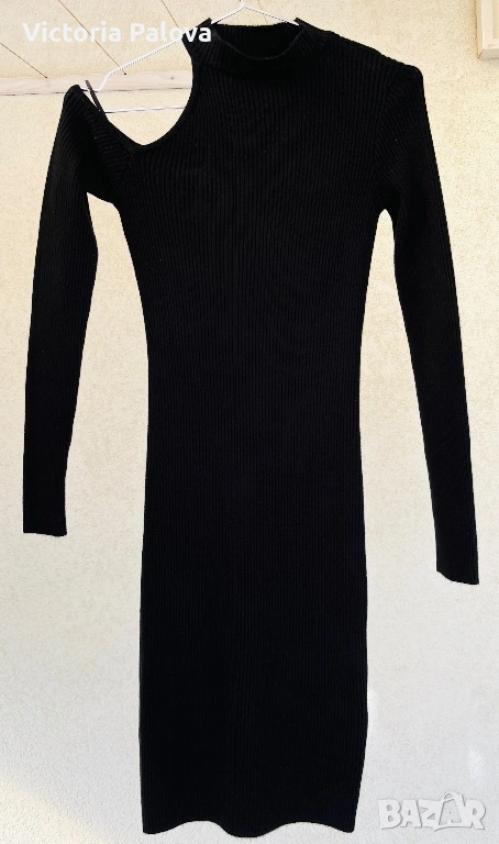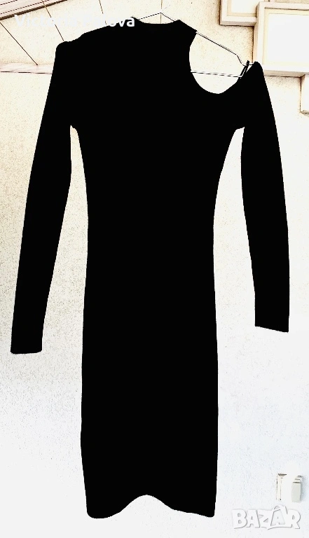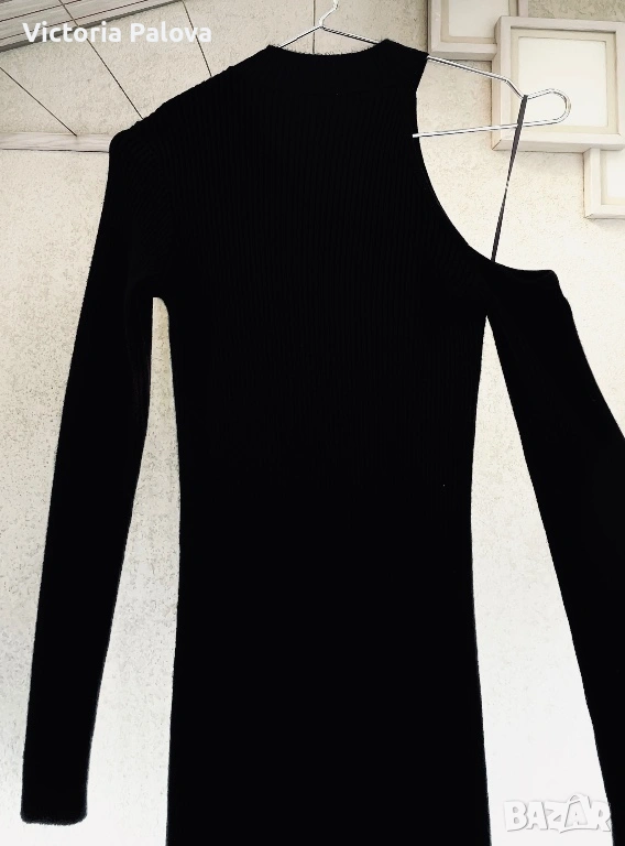 Тази зашеметяваща асиметрична трикотажна рокля от GUESS предлага съблазнително изрязано рамо, стилна висока яка и удобни дълги ръкави, които създават перфектен баланс между елегантност и ежедневен шарм. Меката материя – 89% вискоза, 9% найлон, 2% полиуретан – осигурява нежно прилягане и комфорт. В класически черен цвят, подходяща за запомнящи се вечери или спонтанни casual събития. Реалната цена на роклята е 130€.