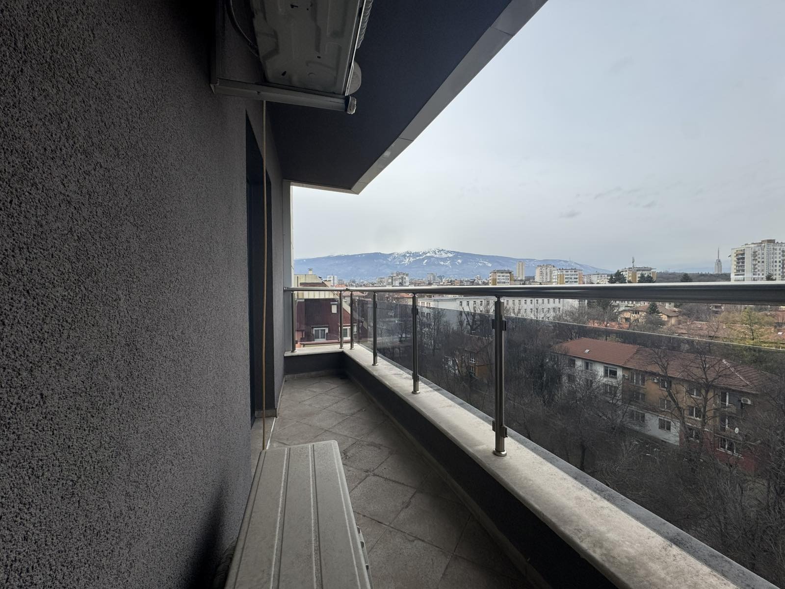 Апартаментът е разположен на 8-ми етаж от общо 9, с площ от 144 кв.м и функционално разпределение: антре, мокро помещение, просторен хол, три самостоятелни спални, баня с тоалетна и две тераси. Изложението е югозападно, което осигурява отлична осветеност и комфорт през целия ден. Отоплението е на ТЕЦ, като за летните месеци са предвидени климатици.