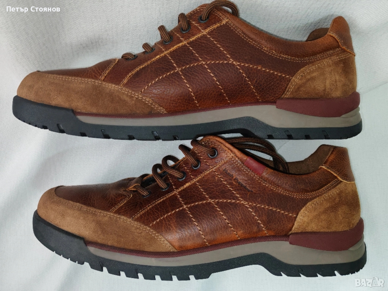 Предлагам чудесни мъжки обувки на известната марка Hush Puppies. Обувките са купувани миналата есен на цена от 69.95 евро и са носени един сезон в рамките на около 4 месеца. В отлично състояние са, без скъсано, разпрано, напукано или разлепено. Произведени са в Португалия от кафява естествена кожа, в комбинация с естествен велур. Хастарът и стелката са комбинация от естествена кожа и текстил, подметката е от полиуретан. Дължината на стелката е 30 см, височината на подмеката при петата е 3 см. Изпращам с избран от купувача куриер и възможност за преглед и тест.
