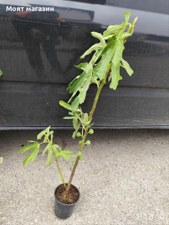 Смокиня / Разсад Студоустойчиви – Налични 5 сорта 1 Смокиня Мичуринска-10 Фиданки около 70-90см за 13,49€ Вкоренени резници на около 10см за 12лв 7€ Смокиня „Мичуринска – 10“ е най – разпространеният сорт смокини в България. Отличава се с необикновена родовитост, единственият в България, който винаги, всяка година без изключение, дава обилна реколта от качествени плодове. Дава реколта от Breba от средата на юни, последвана от основна реколта. Плодовете зреят до края на септември, а при подходящо време – и до края на октомври. Сорт „Мичуринска -10“ се нарежда сред най – студоустойчивите смокини в света. Пораженията от студ започват при температури под – 16 до – 19°С, а дърветата измръзват до земята при температури под – 22°С. 2 Ficus carica Dalmatie – Далматинска Жълта Фиданки около 120см за 13,49 € Вкоренени резници на около 10см за 7€ Този сорт смокиня издържа на отрицателни температури до минус 18 градуса Плодовете са едри като круша. Плододава два пъти в годината.Първата е от края на юни до началото на юли, а втората,която е основна реколта, е от началото на август до средата на септември 3 Смокиня сорт Бурса Фиданки около 120см за 24лв (12.27 €) Вкоренени резници на около 10см за 7 € Ficus carica Black Bursa от бутаническото семейство на Moraceae (черничеви). Сортатът е произход Турция издържа на отрицателни температури до минус 18 градуса тип смирна.Плодовете зреят от август до октомври месец 4. Смокиня Султата на марибу – лилала гигант Фиданки около 120см за 13,49€ Вкоренени резници на около 10см за 7€ Това е един популярен сорт за производство на смокини, особено в южна Гърция, където е разпространен под името Mission. Има дълъг период на плододаване, от средата на август – чак до края на октомври, в зависимост от метеорологичните условия в конкретната година. Плодовете имат отлична устойчивост срещу разпукване и загниване. Кожицата им е сравнително дебела и по-рядко се нападат от птици. Качеството на плодовете и плодовото месо е великолепно във всяко отношение. В България дава две реколти. Студоустойчивост: -18°C (зона 7a) Разположение: Директно слънце Почвена pH+: без значение Влажност: умерена Узряване: Септ.-Ноем. 5 Смокиня „Брунсуик“ (Ficus carica ‘Brunswick’) Фиданки около 120см за 24лв (12.27 €) Смокинята Брунсуик е стар, добре познат сорт, ценен заради своите едри, сочни и много сладки плодове. Подходяща е както за южните райони на България (Пловдивско, Санданско, Бургаско), така и за по-хладни места — ако се отглежда на защитено място или в саксия. Средно до силно растящо дърво (до 2,5–3 м височина). Короната е широка и декоративна. Листата са едри, дълбоко нарязани, типични за смокинята. Относително студоустойчив сорт – издържа краткотрайно застудяване до около –15 °C, но в по-студените райони трябва да се покрива през зимата. Плодове Форма: грушовидна или леко сплесната. Размер: едри плодове, обикновено 70–100 г. Кожица: тънка, жълто-кафява до светловиолетова. Месо: розово до червеникаво, много сладко, с приятен аромат. Вкус: типично десертен, без киселинност. Плододаване: Първа реколта – юни (от миналогодишните клонки). Втора реколта – август–септември (от новите леторасти). В по-хладни райони обикновено узрява само втората реколта. Предпочита лека, добре дренирана почва, богата на хумус. Полива се редовно през лятото, но не бива да задържа вода. Подрязва се ежегодно, за да се стимулира нов растеж и плододав
