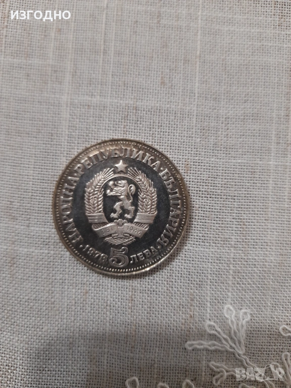 30€ ЮБИЛЕЙНА МОНЕТА ОТ 5 ЛЕВА ОТ 1978 ГОДИНА → Обява 53630256