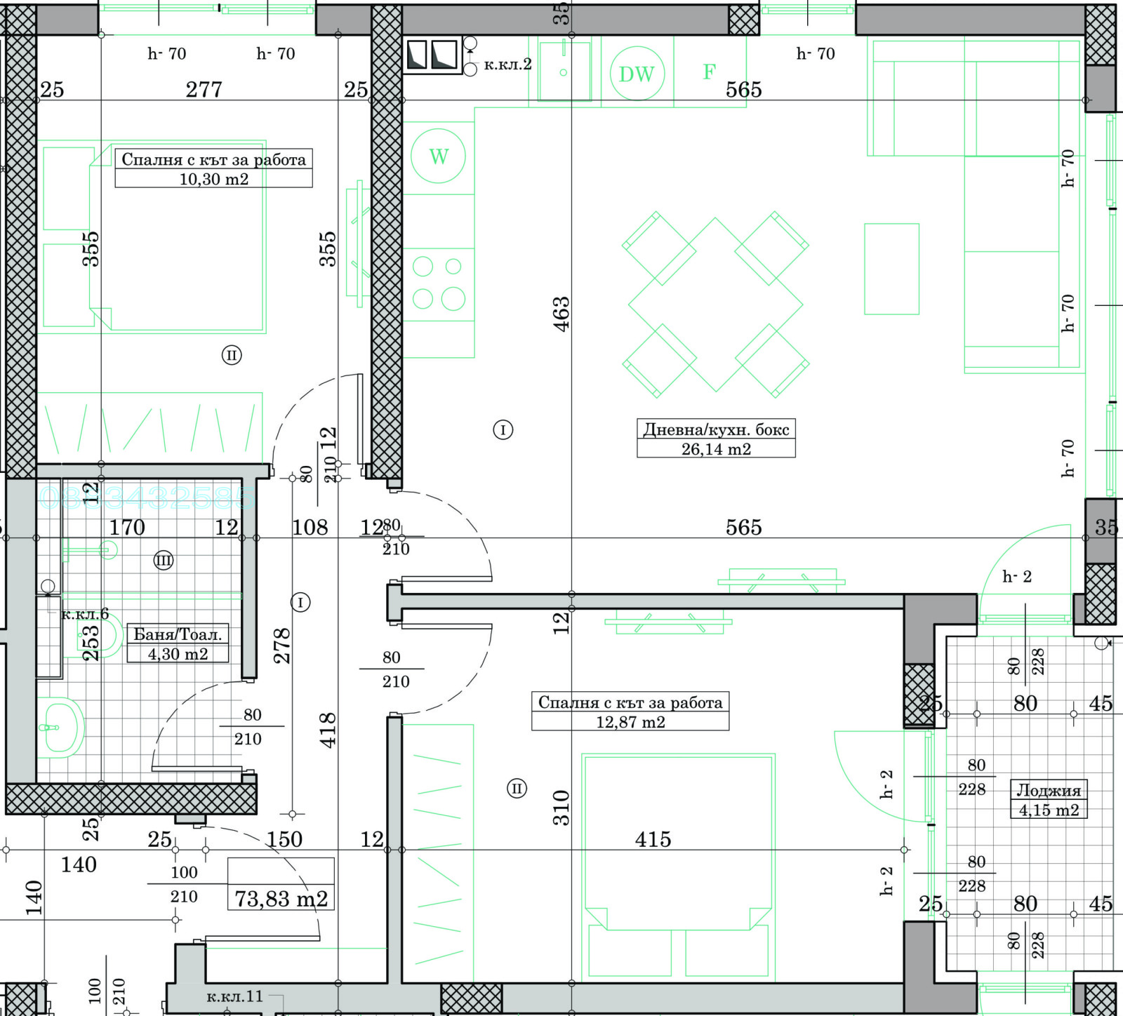 Жилището ще бъде на 10-ти от общо 11 етажа, като изложението му е изток-север и отчасти юг. Чистата площ е 74 кв.м (84 кв.м с общи части).