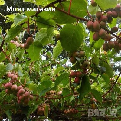кивита -Студоустоичиви 1. Киви ‘Ken’s Red’ – ЧЕРВЕНО КИВИ Самооопрашващо за 9,99€ 2. Киви женева женско за 9,99€ 3. Киви Корнел мъжко за 9,99€ С 1 мъжко може да опрашвате до 5 жески кивита. 4. Киви Анна – Женско за 9,99€ Киви ‘Ken’s Red’ (Червено киви) за цялата територия на България. Плодовете са сравнително по едри от останалите сортове аргути. Те са с тъмно червен цвят, сочни и се консумират директно от растението. Сортът е създаден в Нова Зеландия и е кръстоска между Actinidia arguta cordifolia and Actinidia melanandra. Съхранява се сравнително дълго и това го прави предпочитан сред всички сортове коктейлни кивита. Вкусът му се определя като уникален сред себеподобните и наподобява много на горските червени берита (къпина и малина. Киви женева Описание на продукта За да плододава кивито е препоръчително да бъде засадено до мъжко киви. Сорта е създаден от д-р Слейт през 1990 година в Женева, щата Ню Йорк. Плододава редовно и обилно, а плодовете са със среден размер. Изисква опрашител от сорта Корнел. Хибрид между видовете Actinidia kolomikta, Actinidia melanandra Тази част на плода, която бива огрявана от слънцето става ружено-червена. Теглото им е около 12-15 грама и зреят в края на месец септември. Студоустойчивостта му е до -30С. На височина достига около 6-8 метра, а годишния прираст на едно растение е около 100 см. Растенията са в контейнери, което позволява засаждането им да се извършва почти целогодишно. Много от растенията променят вида си през периодите на своята вегетация, но тук в сайта със снимки се представят в най-атрактивния им вид. Повечето снимки в сайта ни покзват как ще изглеждат растенията след определен период и положени необходимите грижи.
