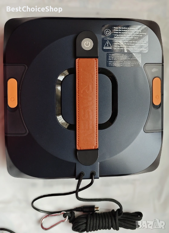 Всмукателна мощност от 6000 Pa държи робота здраво на прозореца. С 4-метрово предпазно въже и UPS система, той ще остане здраво на прозореца в продължение на 25 минути в случай на прекъсване на захранването ще задейства аларма.