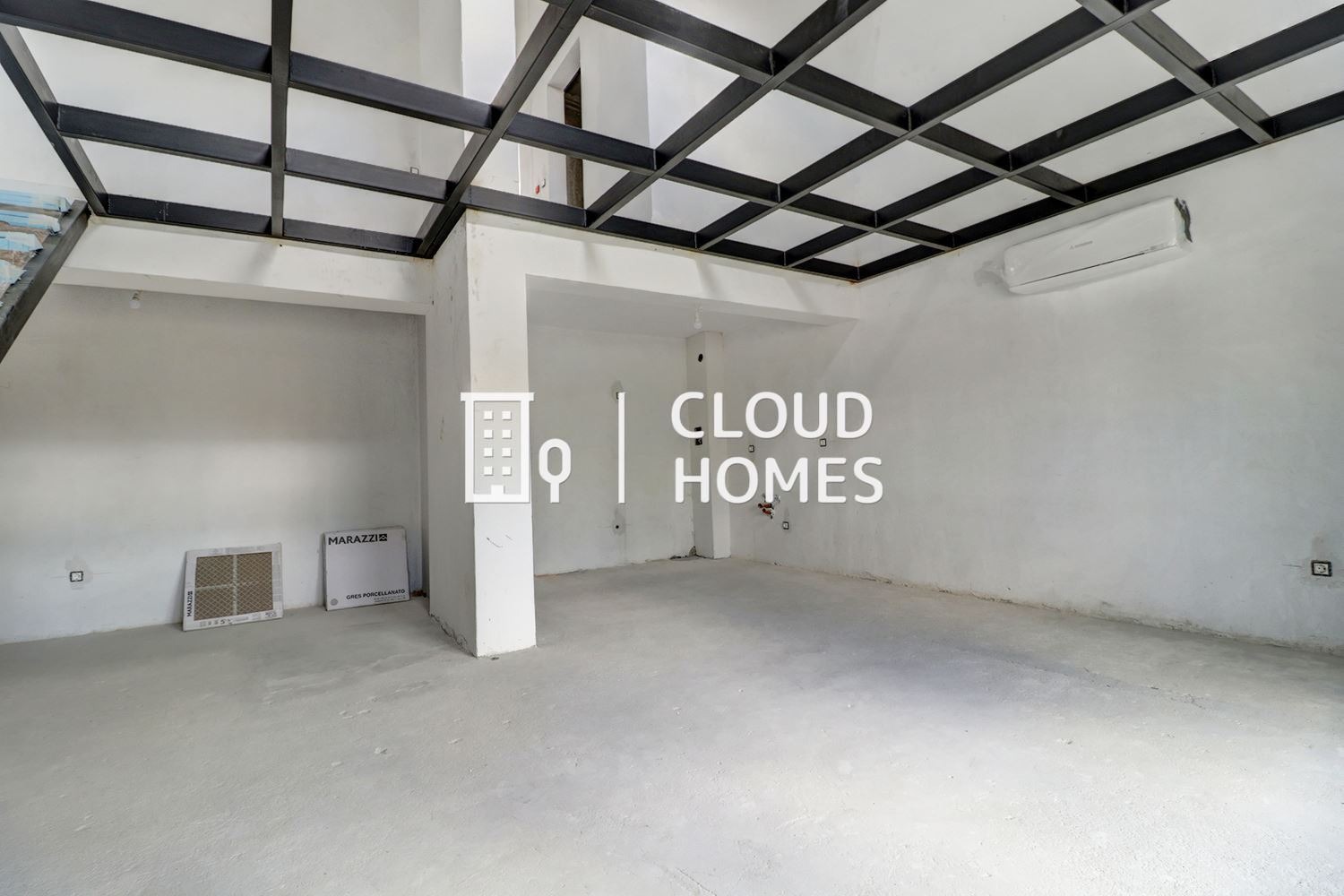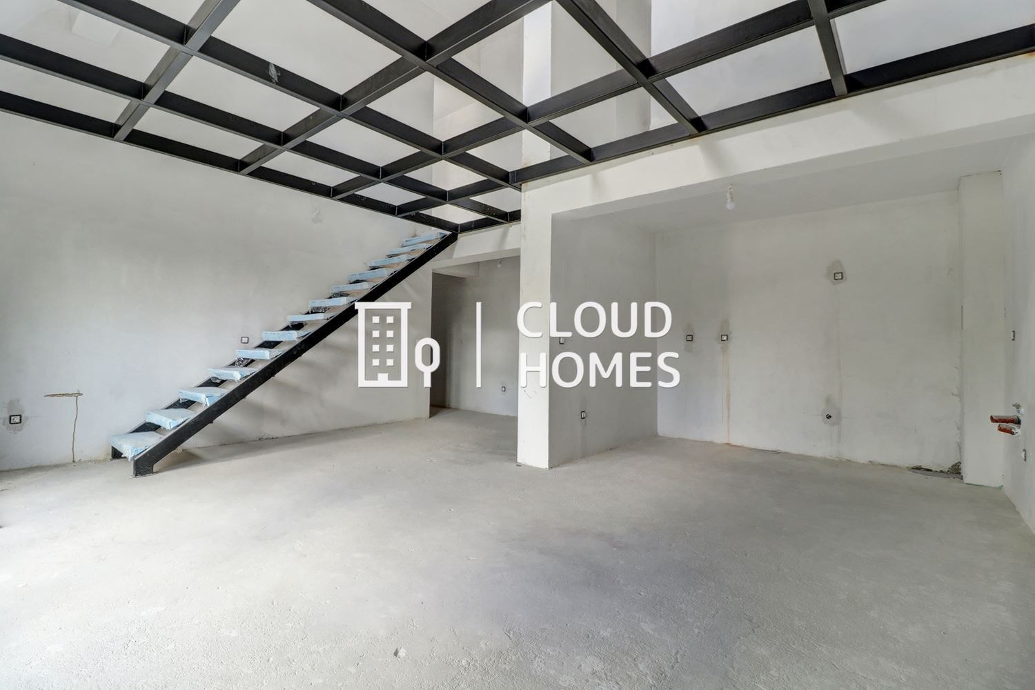 Просторна дневна с обособен кът за мека мебел и трапезария, с директен излаз към тераса, която осигурява допълнително усещане за пространство и светлина. Кухненската част е отделена и практично разположена. На етажа има санитарно помещение, складово пространство и удобна вътрешна стълба, свързваща двете нива.
