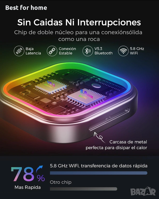 【Солидна връзка, бърз трансфер на данни】Безжичният CarPlay адаптер WityEye разполага с най-новия двуядрен процесор и Bluetooth V5.3 чип за бързо и стабилно сдвояване, плюс двубандов Wi-Fi 2.4-5.8 GHz за бърз трансфер на данни. Насладете се на безупречен звук и отчетлива картина.