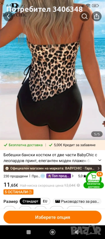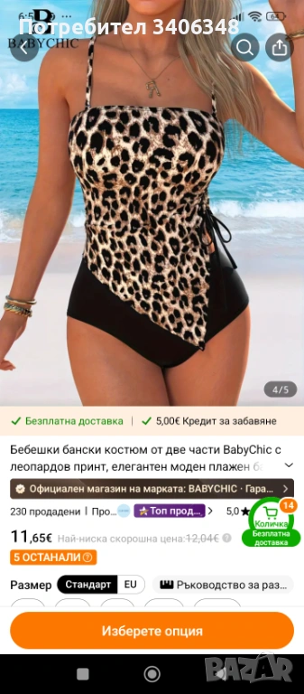 Нов ефектен бански, от 2 части. Тип танкини. Размер XL. Банският е от Тему, но е много добро качество. За съжаление малък за мен!