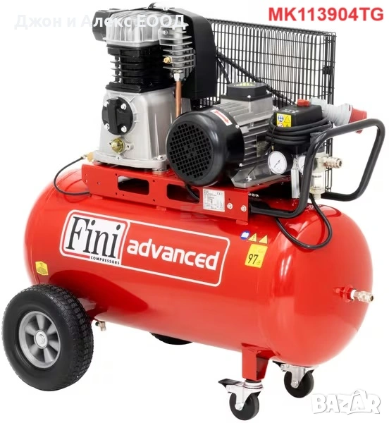 MK113904TG – Мобилен компресор с ремъчно задвижване, 3-фазен 400 V / 3 Ph / 50 Hz, въздушен поток 400 l/min, въздушен прием 500 l/min, капацитет на резервоара 90 l, размери 1070×460×870 mm – 1670.00 €