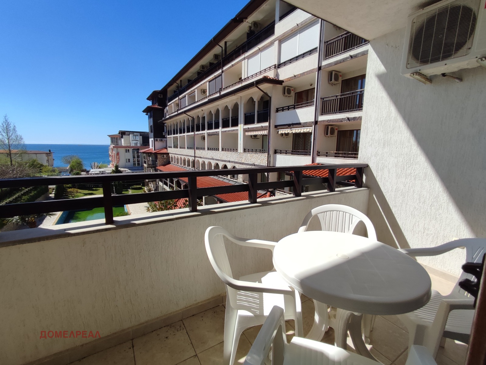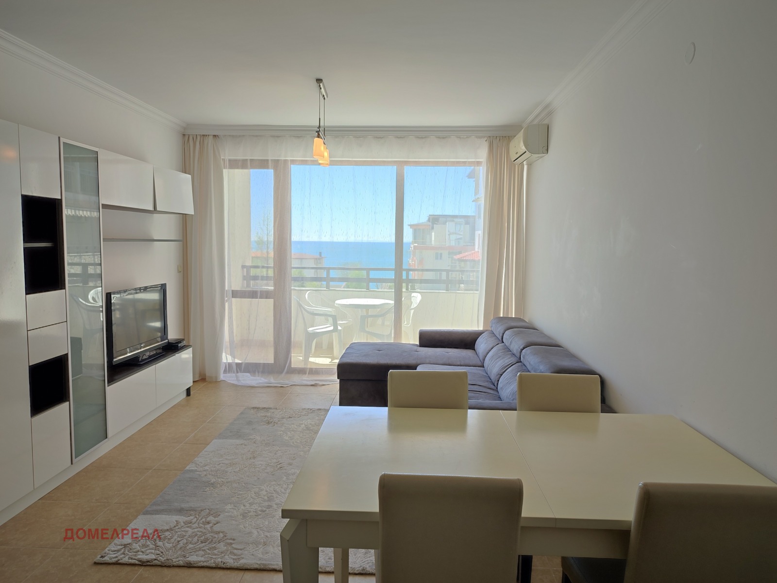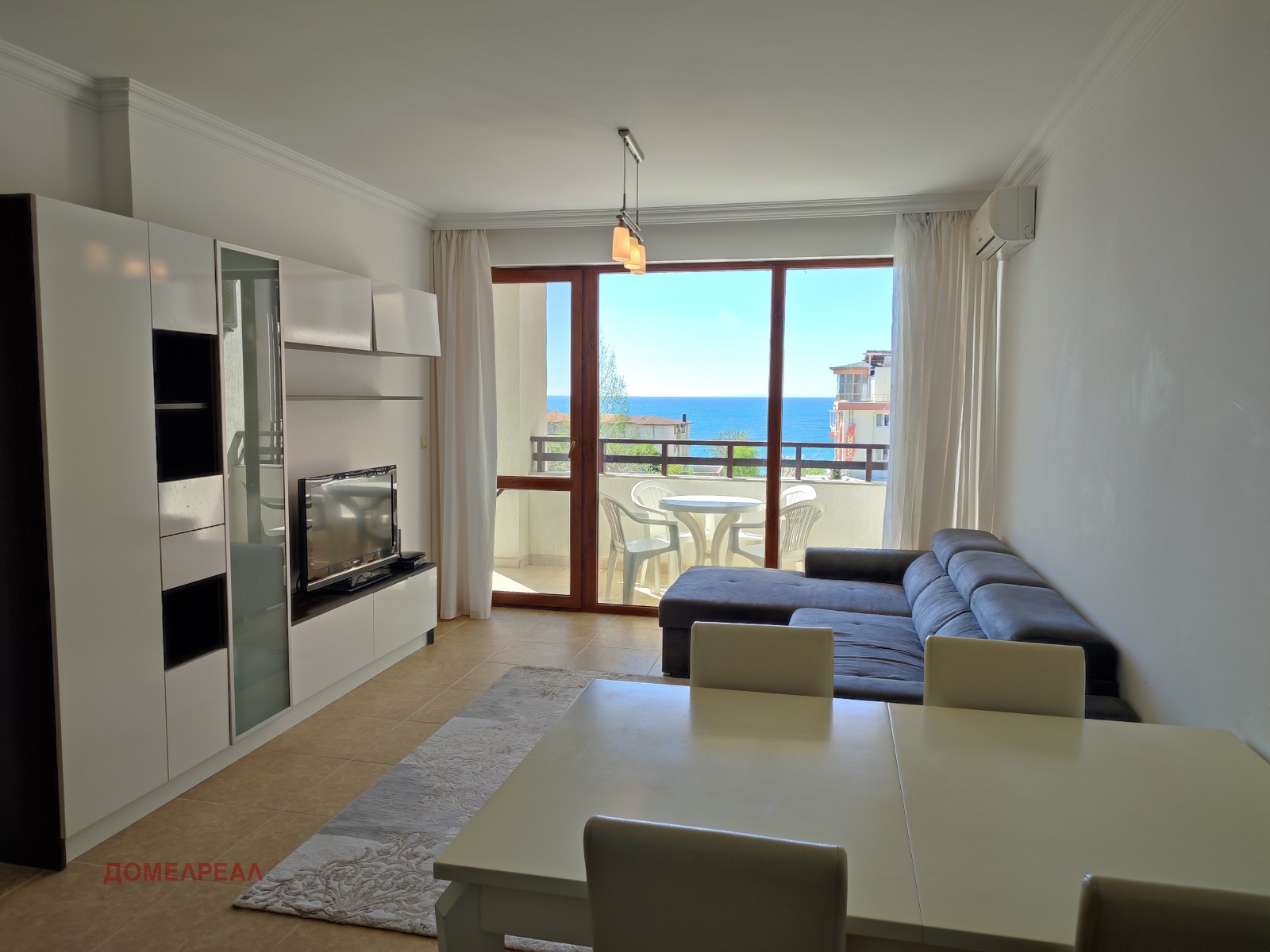 Апартаментът се намира на втори етаж с изглед към морето, далеч от басейна, така че тук е тихо и спокойно. Общата площ на имота е 98 квадратни метра. Той се състои от: всекидневна с кухня и трапезария с изход към тераса, където можете да закусвате, обядвате, вечеряте и да се наслаждавате на морето, слушайки шума на вълните през целия ден, тъй като над терасата има широк навес, защитаващ от слънцето и дъжда; две големи отделни спални с климатик; тераса, изолирана от съседите с бетонни стени; баня с душ кабина, голям нов бойлер; входно антре - тук има гардероб за горното облекло, съхранение на домашни неща, прахосмукачка, голямо огледало, обувница. Мебелите са изработени по поръчка от качествени материали. Апартаментът е реновиран и напълно оборудван с всичко необходимо за комфортно постоянно живеене на семейство. Всички електроуреди са от високо качество. Всичко остава при купувача. Собственикът на апартамента е единствен.