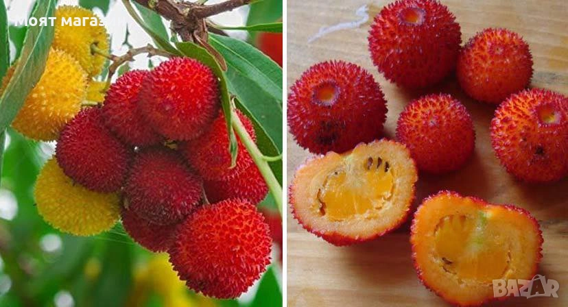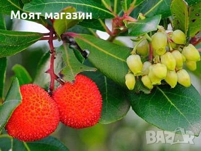 Ягодово дърво – Арбутус Размер около 5-10см за 6,50 € Размер около 15см за 9,50 € Размер 25-35см за растения на 2г 17,50 € Размер около 50-60см за растения на около 3г 22 € Размер около 90-110см за 32€ Растения на 4-5г в плододаваща възраст Студоустойчив ! Ядлив екзотичен вечнозелен храст, който с годините придобива формата на дърво. Достига височина 4-6м.Цъфти и плододава от Октомври до Март. Когато е напълно узряло, смътно напомня на пъпеши или кайсии. В Странджа планина можете да го срещнете като един от редките вечнозелени видове, които придават неповторимото очарование на природата там, която дори в най-суровото време изглежда свежа и зелена. Атракция представляват плодовете на Арбутуса, които са с големина около 2-3см и приличат на ягодки от където идва и народното наименование на растението Ягодово дърво. Засаждайте растенията на светли, полусенчести изложения, защитени от вятър. Предпочита компанията на Дафинов лист, Дъб, Юниперус Студоустойчив ! Растенията са в в контейнери, което позволява засаждането им да се извършва почти целогодишно. Много от растенията променят вида си през периодите на своята вегетация, но тук в сайта със снимки се представят в най-атрактивния им вид. Повечето снимки в сайта ни покзват как ще изглеждат растенията след определен период и положени необходимите грижи.