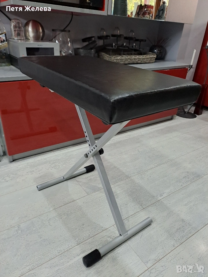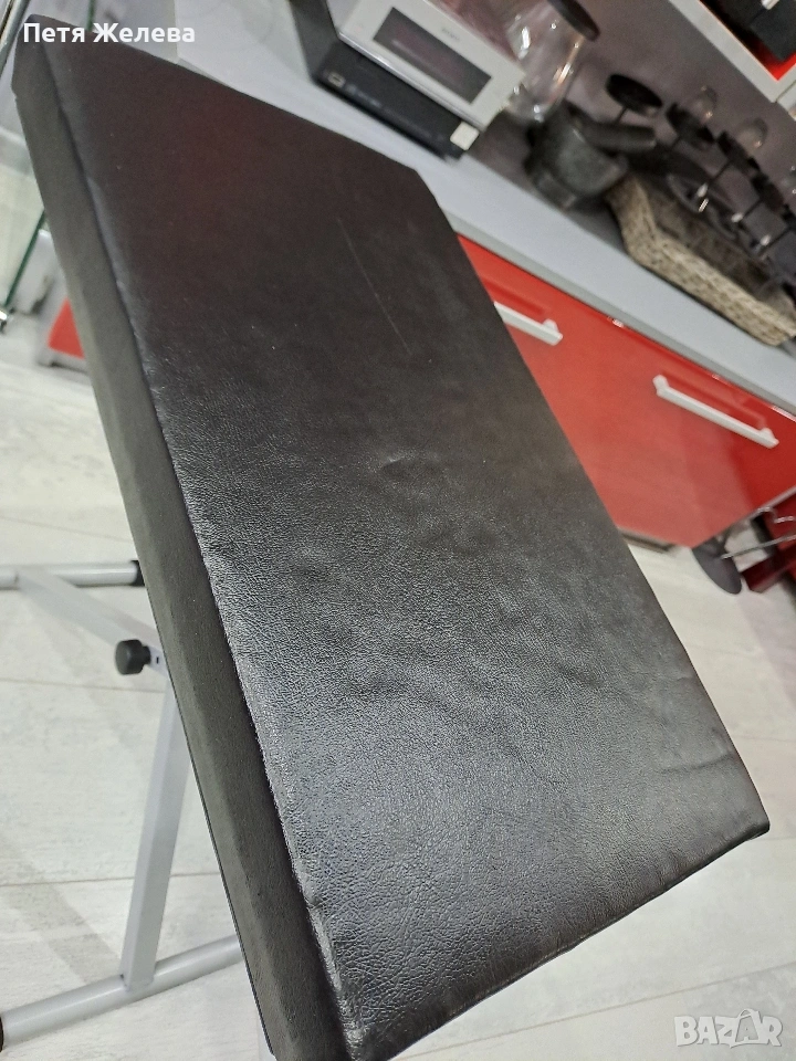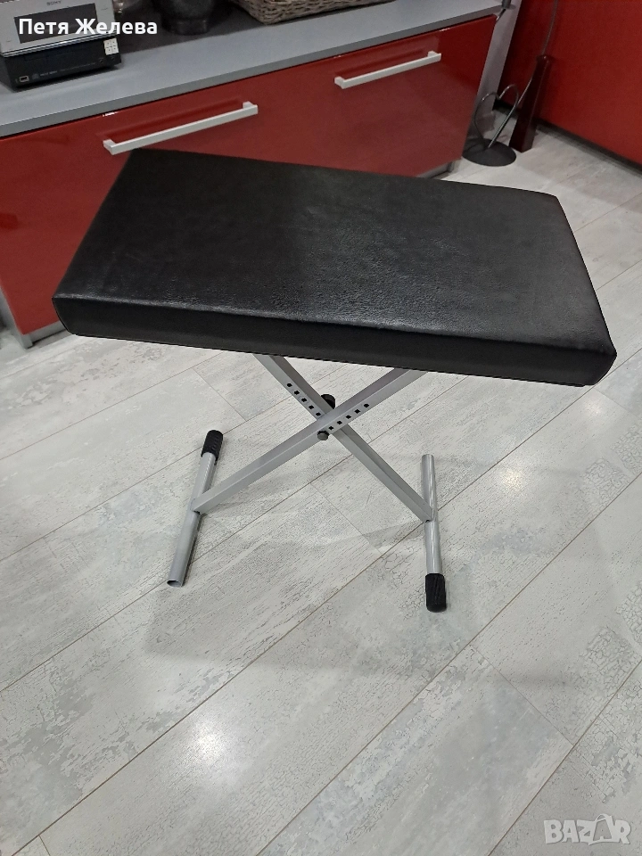 Внос от Австрия в отлично състояние. Здрави,устойчив и удобен.Седалка 55/31/6см от кожа и пяна(дунапрен). Регулиране на височината - 6 степенно (59см мах.) Пращам с куриер.