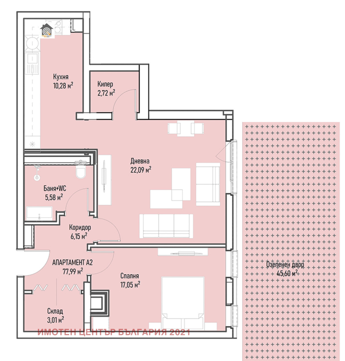 Предлага се двустаен апартамент с чиста площ 78 кв.м и 45 кв.м собствен двор!