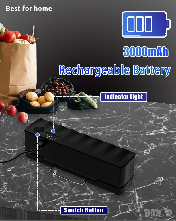 【Акумулаторна машина за запечатване на торбички с капацитет 3000mAh】Термозапечатващата машина за пластмасови торбички е оборудвана с батерия от 3000mAh за многократна употреба. Едно пълно зареждане е достатъчно за 100 пъти по-дебели торбички, 180 пъти средно дебели торбички и 300 пъти по-тънки торбички.