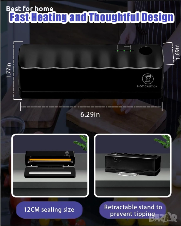 【Лека и преносима】Тази мини машина за запечатване на торбички е перфектният избор за вашите ежедневни нужди от запечатване. Размерите ѝ са 160*43*45 мм, с прибираща се стойка на гърба, което е удобство и е добър инструмент за съхранение в кухнята. Много е подходяща за пътуване, бизнес пътувания и къмпинг.