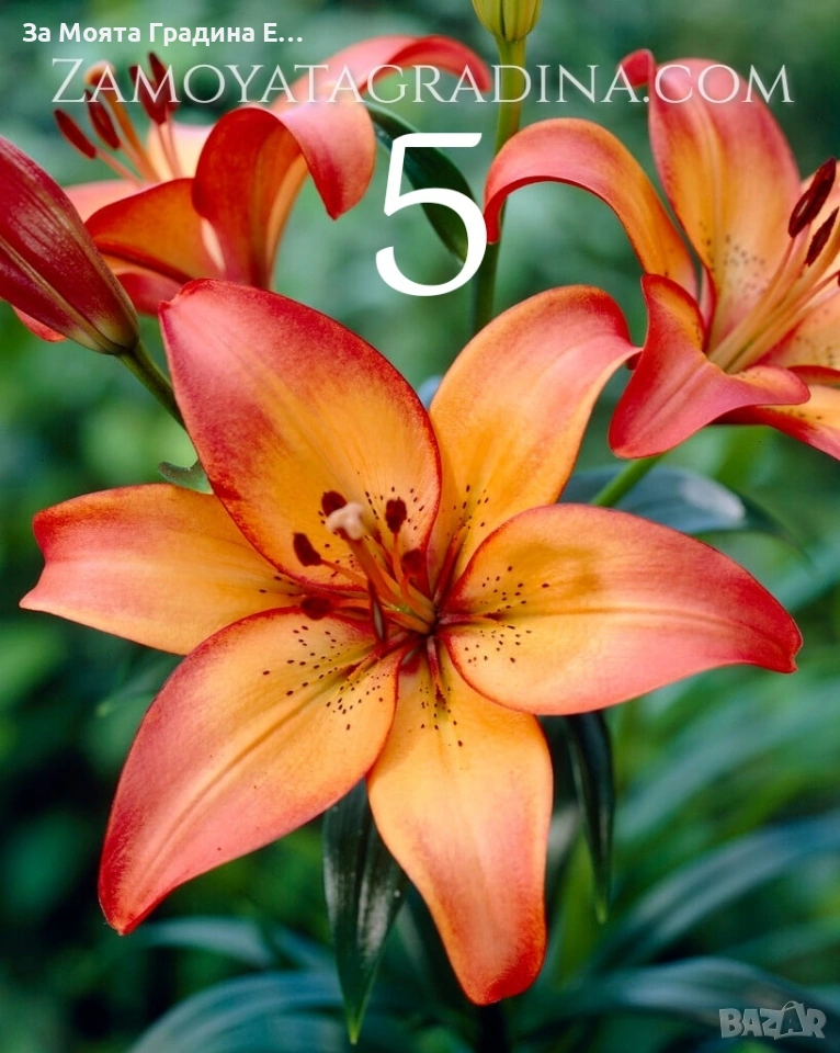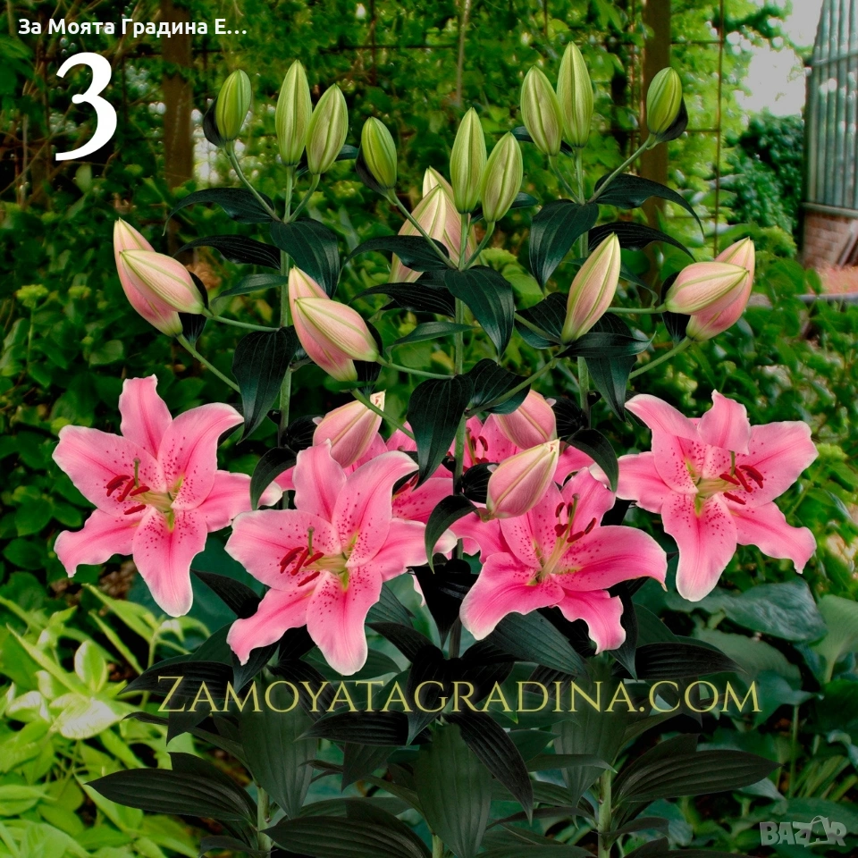 Лилиум Налични 5 вида Цена за 1бр 2 Евро Всяка снимка е номерирана и може да си избирате по цвят. Приемаме поръчка за след 25 ти февруари 2026г 1 Lilium Corleone Луксозен ориенталски лилиум с наситен тъмнорозов до винен цвят. Едри цветове със силен, приятен аромат. Подходящ за елегантни букети и специални поводи. 2 Lilium Dizzi Азиатски лилиум с бели цветове и ефектни бордо пръски. Без аромат, изключително издържлив и подходящ за ежедневни и модерни аранжировки. 3 Lilium Sorbonne Класически ориенталски лилиум в нежно розово с бял кант. Големи цветове и интензивен аромат. Един от най-предпочитаните сортове за букети и подарък. 4 Lilium Belcastro Елегантен бял ориенталски лилиум с много едри цветове и силен аромат. Перфектен избор за сватбени букети, официални събития и стилни композиции. 5 Lilium Royal Sunset Азиатски лилиум в топли нюанси на оранжево и жълто. Без аромат, с дълъг живот във ваза. Внася свежест и слънчево настроение във всеки букет. Повечето снимки в сайта ни покзват как ще изглеждат растенията след определен период и положени необходимите грижи. Моля разгледайте и другите ни растения в сайта. Благодарим че избрахте нас 😊 Тел. 0877977519