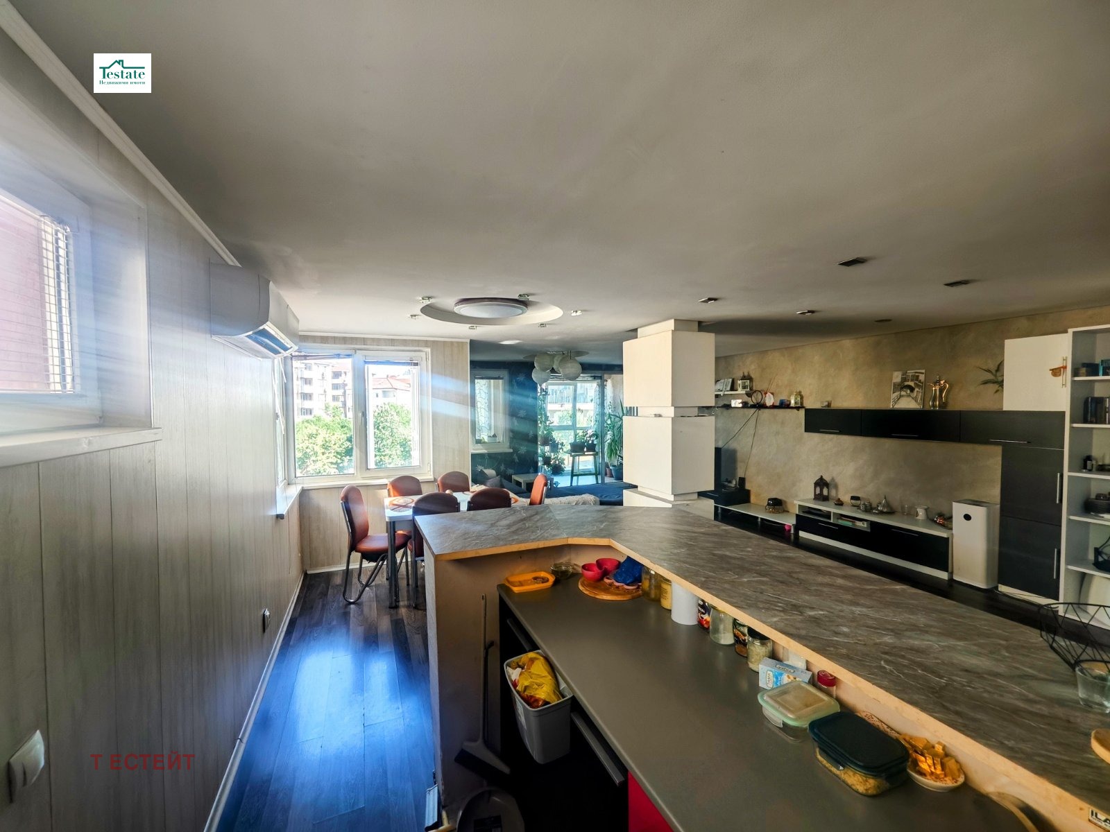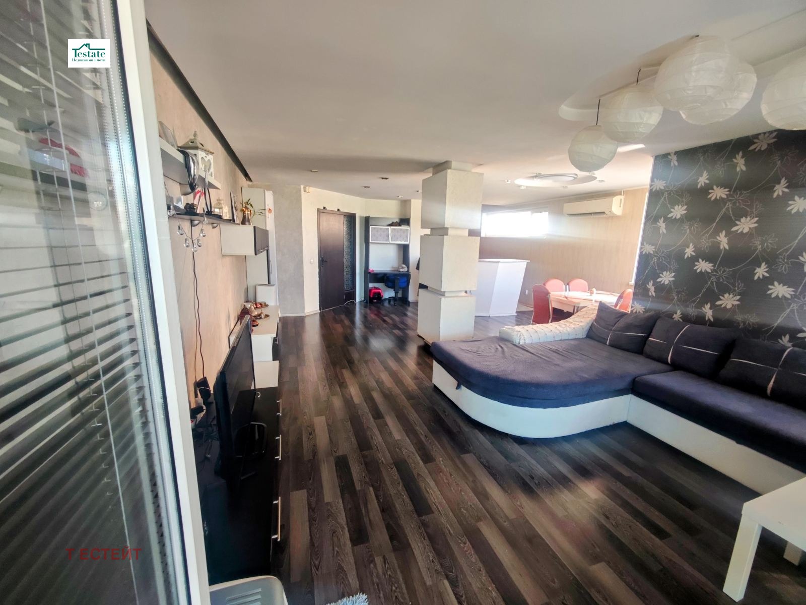 Агенция Т Естейт продава тристаен апартамент в Люлин 2 в тухлена сграда от 2007г с площ от 126 кв.м чиста площ-149,30 кв.м. с общите части на етаж 2/7.Разпределението на имота е-Голямо Входно Антре, Кухня с Трапезария и Хол и голяма тераса, Две Спални с обща тераса, Две Санитарни Помещения. Много светло и просторно жилище, големи прозорци. Възможност за закупуване на подземно парко място с цена 15 000 Е.
