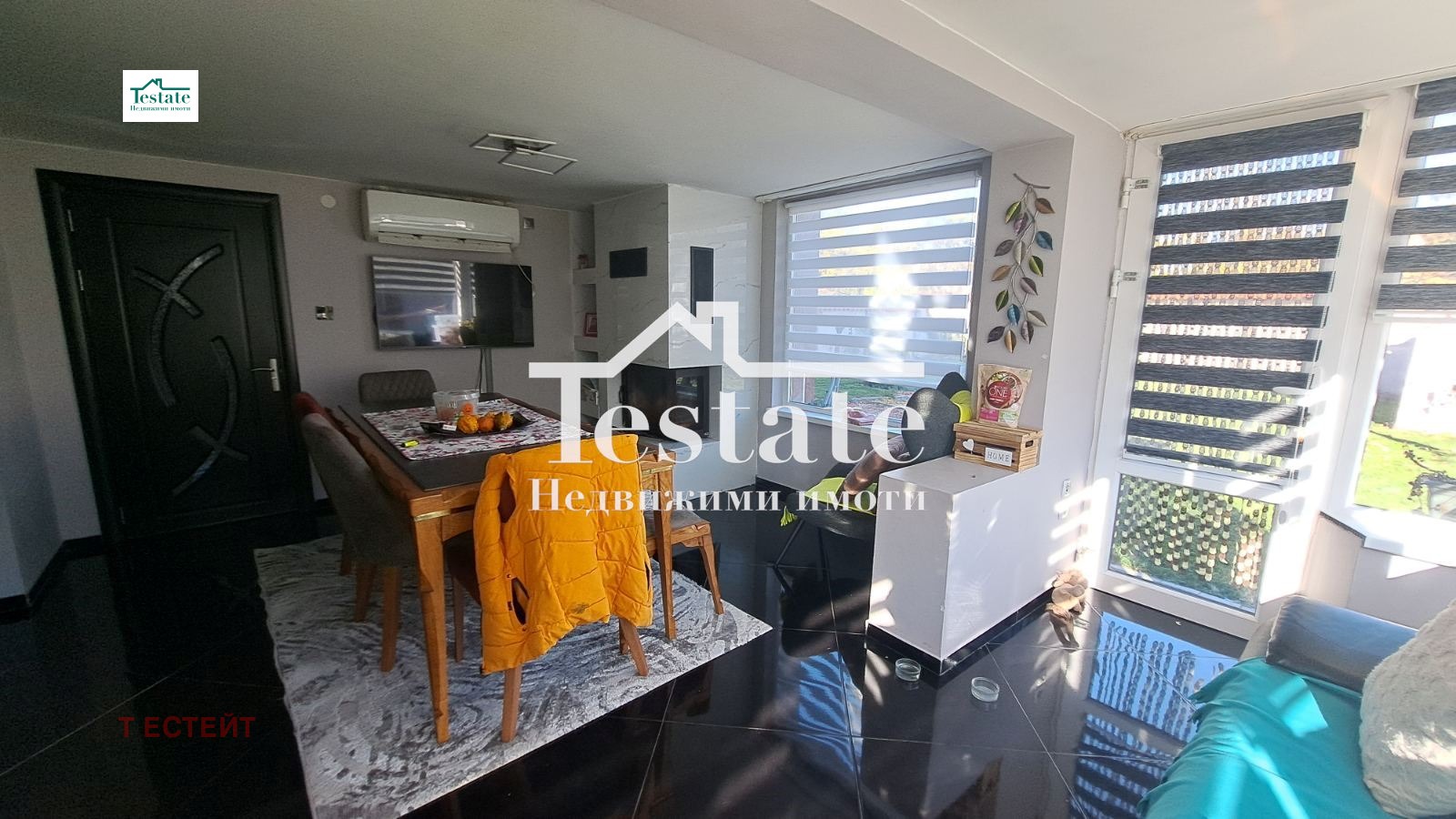 3-ти етаж ( 94 кв.м.)- голямо отворено пространство което е превърнато в детски кът за игра и под покривен килер. Отоплението е с климатици камина. Имота се продава с цялото обзавеждане и оборудване.