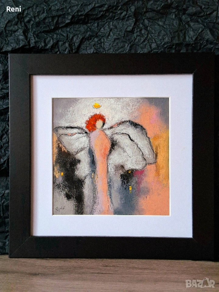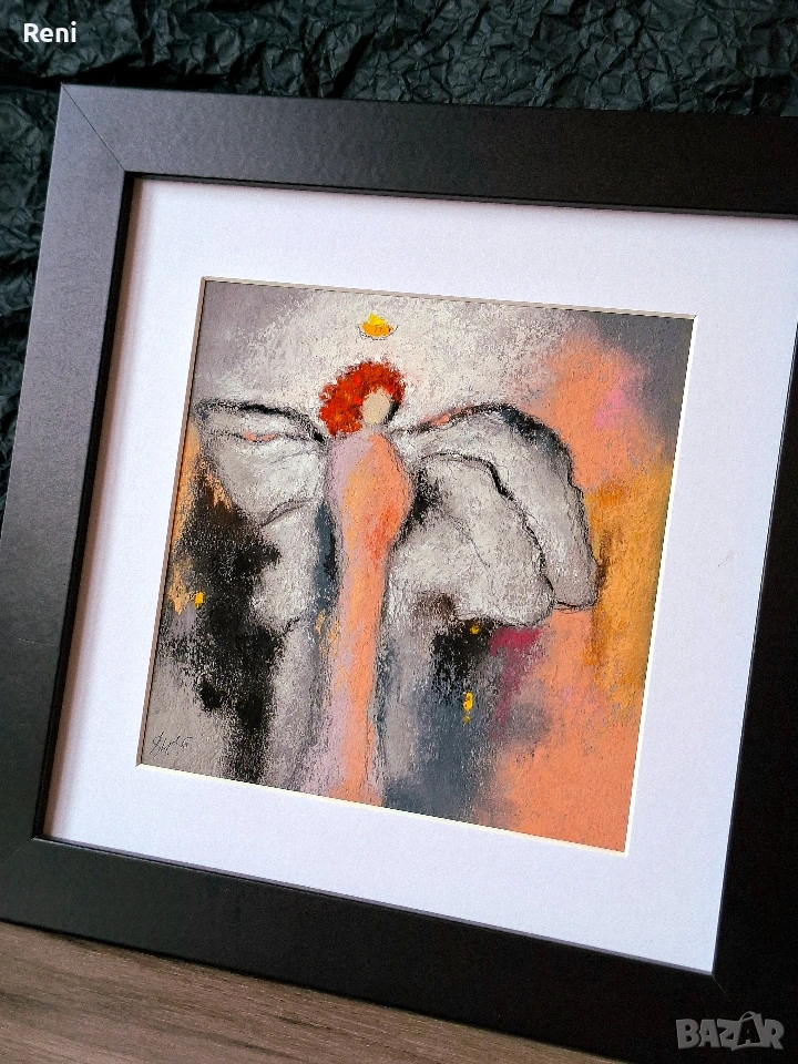 Авторска рисунка абстрактен ангел, техника въглен и пастел, пастелна живопис. Не е принт! Фина детайлна ръчна рисунка - оригинал!