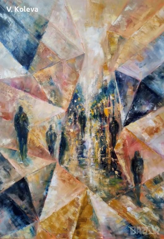 Отраженията по мократа улица не са просто светлина – те са следи от мисли, спомени и надежди. Всеки силует носи собствено вътрешно пътуване, а градът става огледало на това движение.