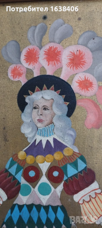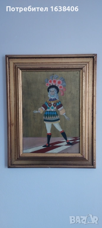 Картина акварел, рисувана върху шперплат. Дървена рамка. Подписана.