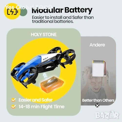 Компактен и забавен Holy Stone HS210F мини дрон 2-в-1, създаден специално за деца и начинаещи. Моделът предлага два режима – полет и движение по земя (Land Mode), което го прави изключително интересен и лесен за управление.