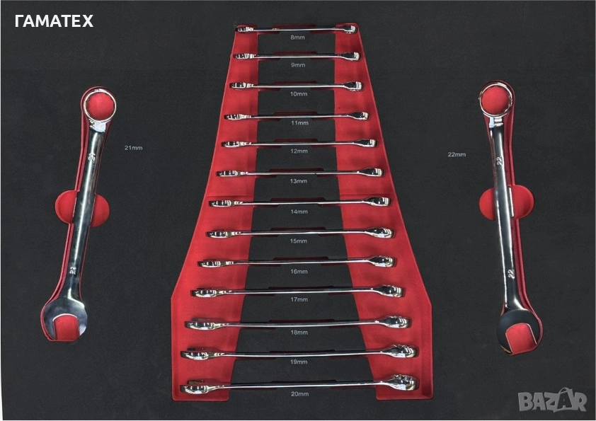15 бр. Звездогаечни ключове: 8-9-10-11-12-13-14-15-16-17-18-19-20-21-22mm