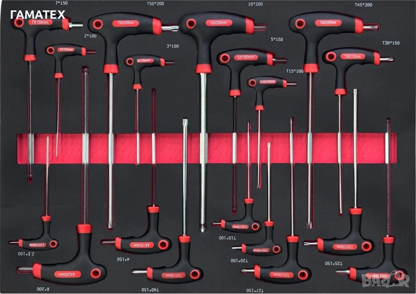 Torx: 8, 9, 10, 15, 20, 25, 27, 30, 40