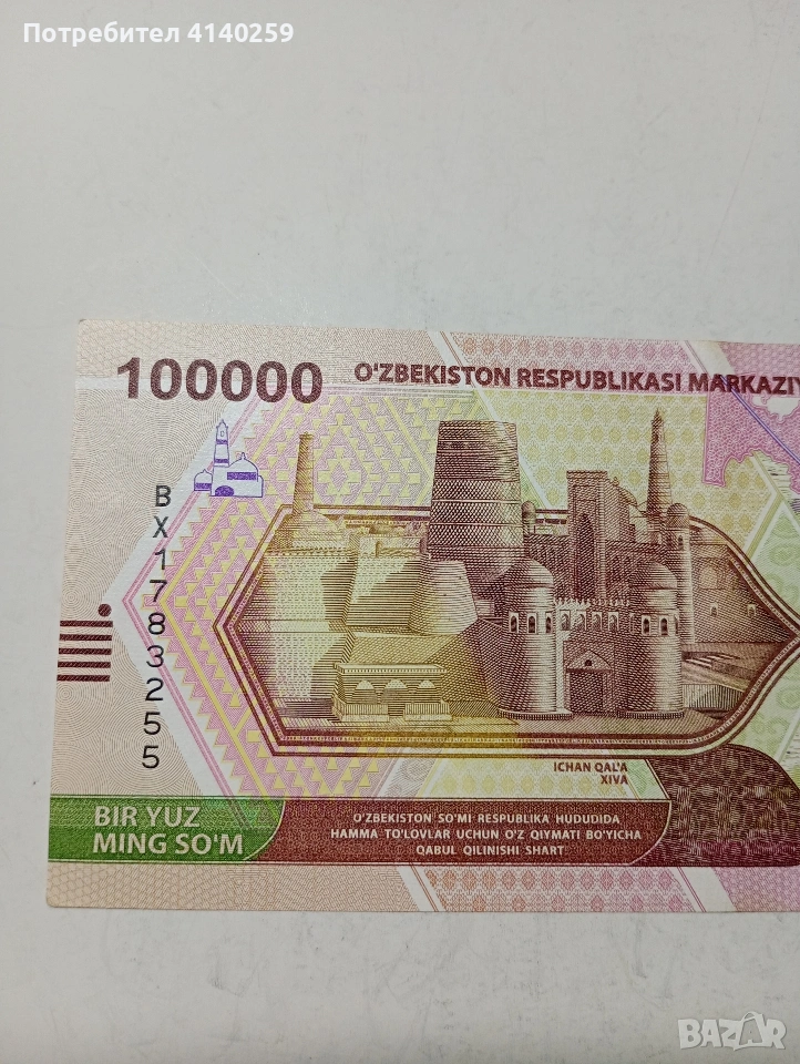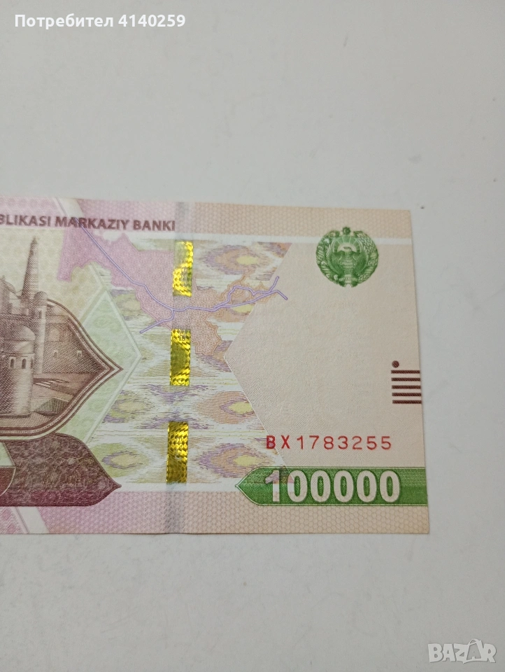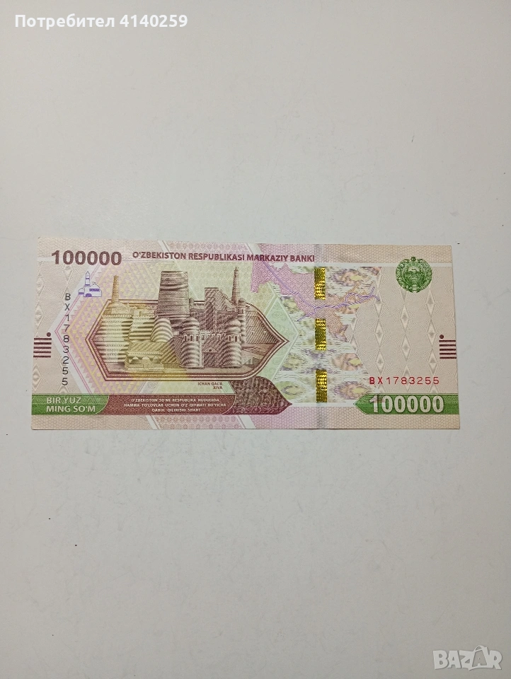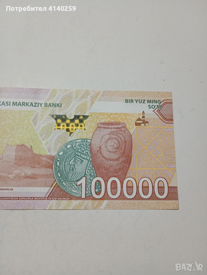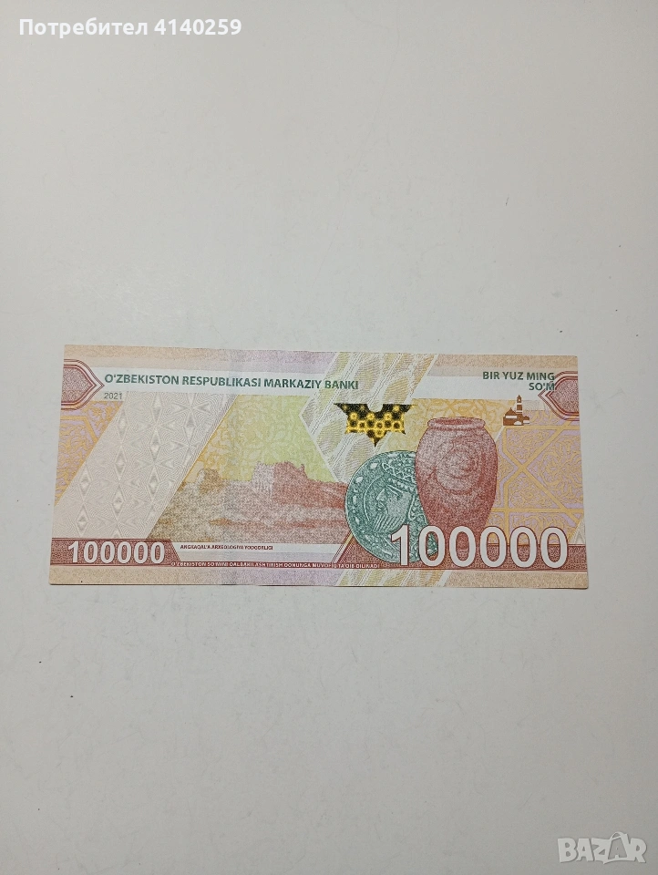 УЗБЕКИСТАН БАНКНОТА 100,000 СОМА 2021 Г СЪСТОЯНИЕ НОВО ПОЛУЧАВАТЕ СНИМАНАТА БАНКНОТА РАЗГЛЕДАЙТЕ ДРУГИТЕ МИ ОБЯВИ ДА КОМБИНИРАТЕ ДОСТАВКА ЕКОНТ ЗА ВАРНА ЛИЧНО