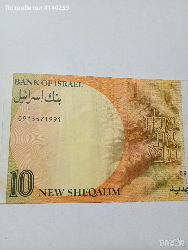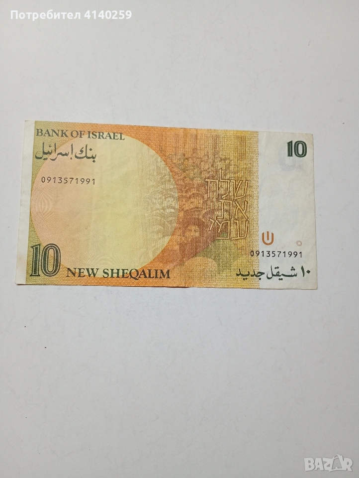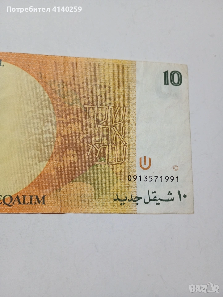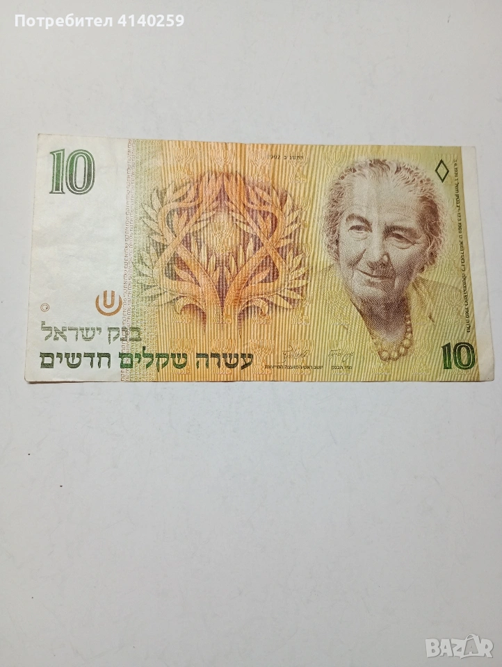 ИЗРАЕЛ БАНКНОТА 10 ШАКЕЛА 1992 Г СЪСТОЯНИЕ ОТЛИЧНО ПОЛУЧАВАТЕ СНИМАНАТА БАНКНОТА РАЗГЛЕДАЙТЕ ДРУГИТЕ МИ ОБЯВИ ДА КОМБИНИРАТЕ ДОСТАВКА ЕКОНТ ЗА ВАРНА ЛИЧНО