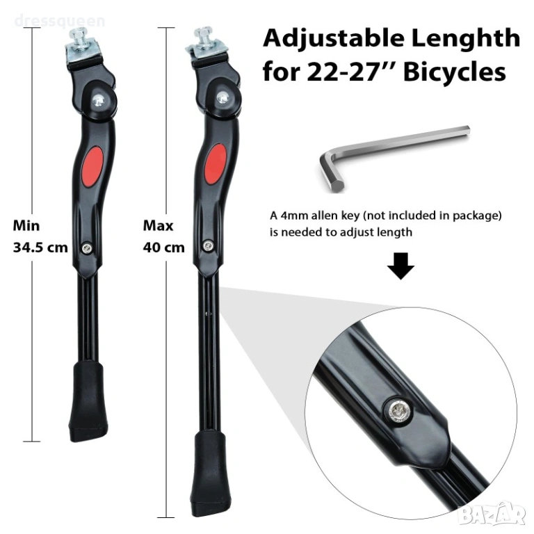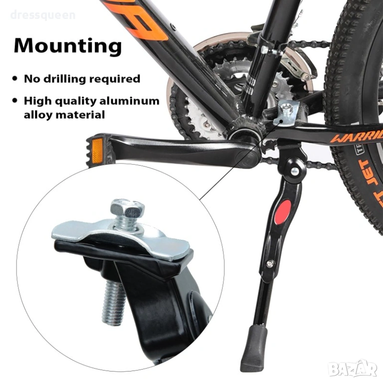 Здрава, лека и лесна за монтаж алуминиева странична стойка за велосипеди с гуми 24–26 цола – идеална за стабилно и сигурно паркиране.