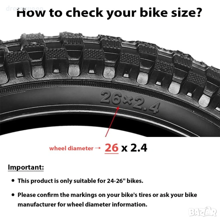 Подходяща за велосипеди с размер на гумите 24", 25" и 26".