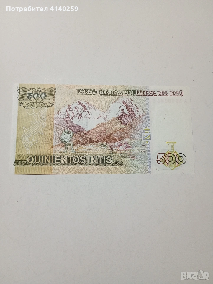 ПЕРУ БАНКНОТА 500 ИНТИ 1987 Г СЪСТОЯНИЕ НОВО ПОЛУЧАВАТЕ СНИМАНАТА БАНКНОТА РАЗГЛЕДАЙТЕ ДРУГИТЕ МИ ОБЯВИ ДА КОМБИНИРАТЕ ДОСТАВКА ЕКОНТ ЗА ВАРНА ЛИЧНО