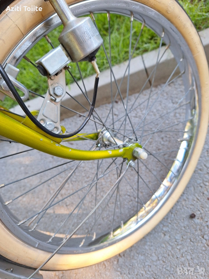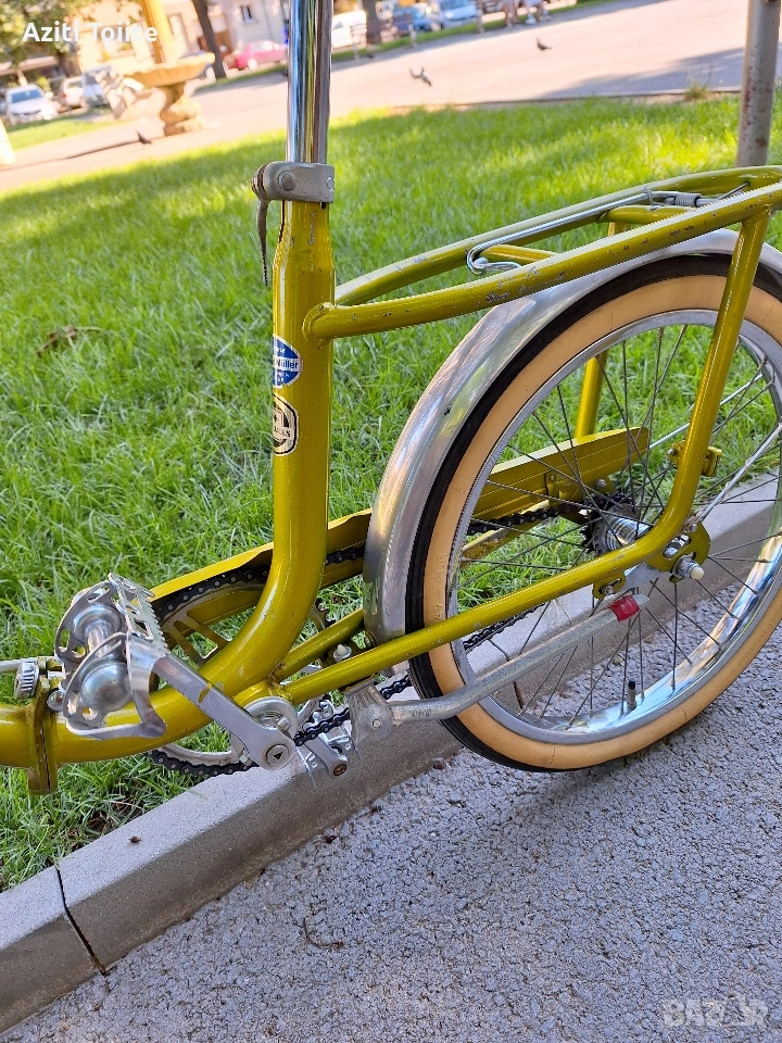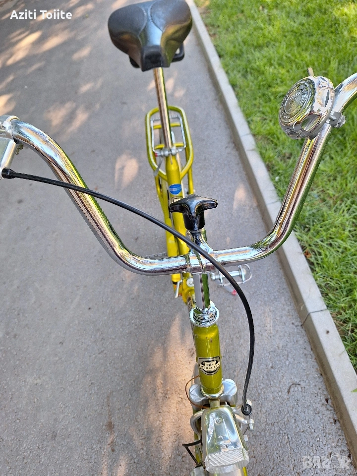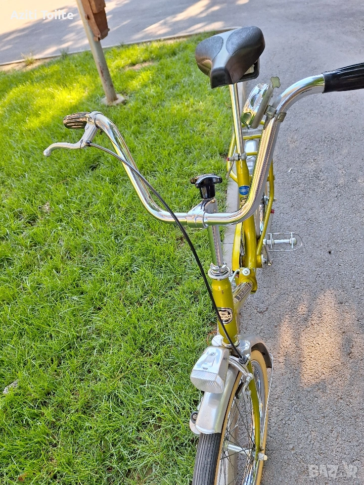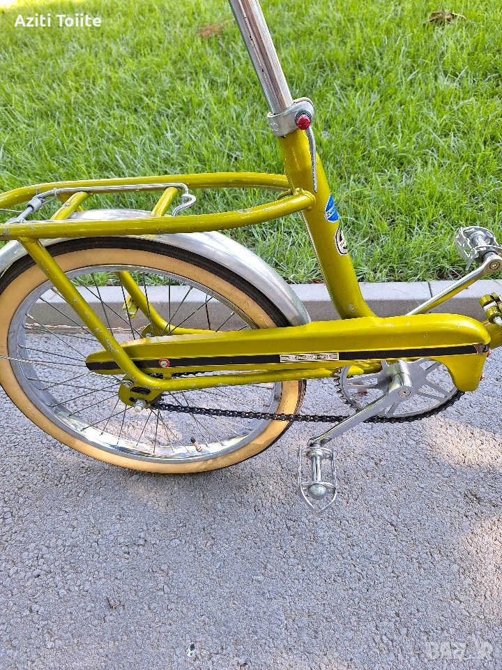 Уникална ретро класика,модел 1962 г. изглеждащ като нов.За разлика от по съвременните сгъвайки при този модел предната и задната част се отделят изцяло.Всичко по велосипеда е оригинално така както е излязло от завода и всичко е на 100 % запазено.Тази обява е пусната само за ценители и фенове на ретро класики също така и за хора,които обичат красивите неща.