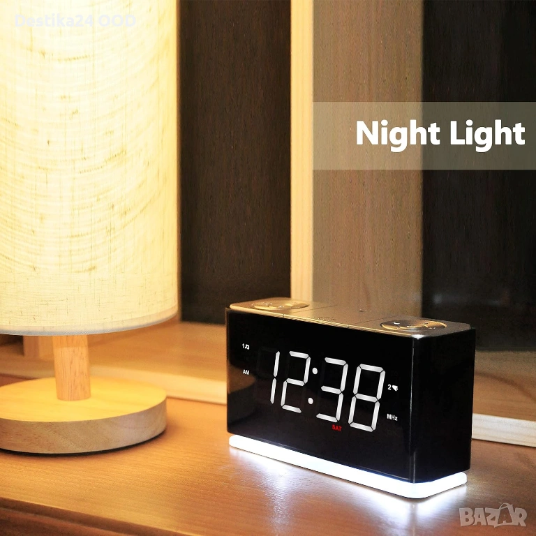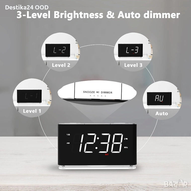 Големият 1.4" LED дисплей показва часа с ясни и големи цифри, видими от цялата стая. Разполага както с автоматично, така и с ръчно регулиране на яркостта, за да не пречи на съня ви през нощта.
