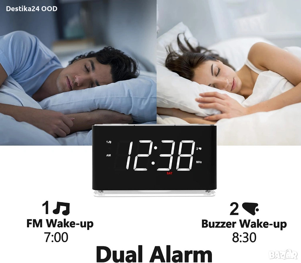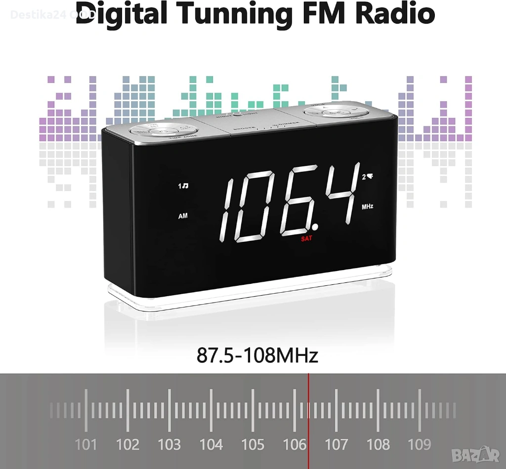 Модерен радио часовник iTOMA CKS507 с голям LED дисплей, Bluetooth връзка и двойна аларма. Идеален за спалня, детска стая, офис или всекидневна.