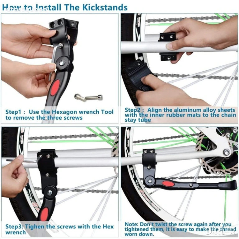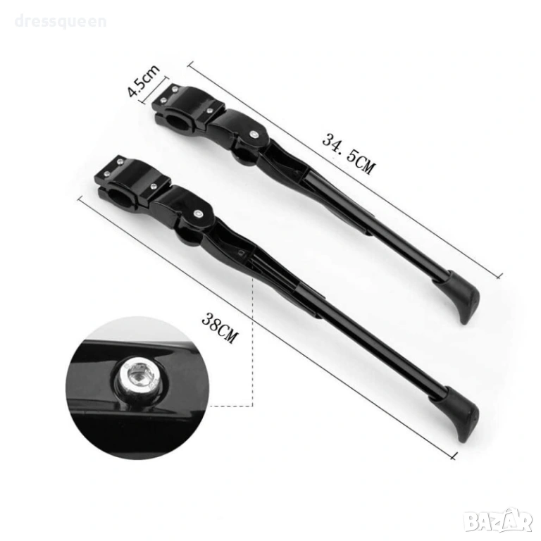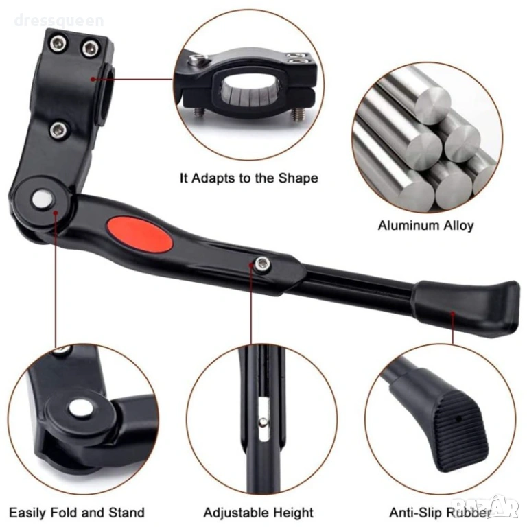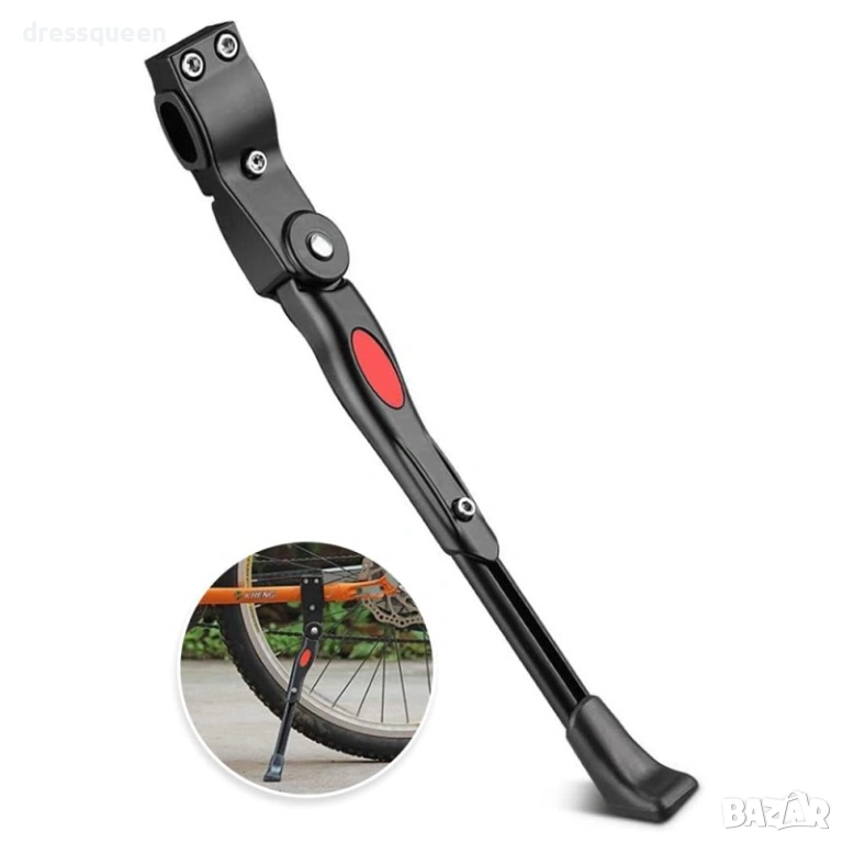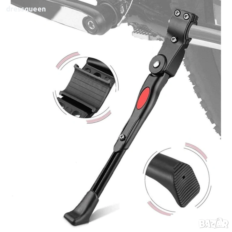 Стабилност, издръжливост и сигурност за вашия велосипед! Тази универсална алуминиева странична стойка е подходяща за велосипеди с гуми 24"–29", включително MTB и шосейни модели (не е за детски велосипеди).