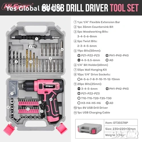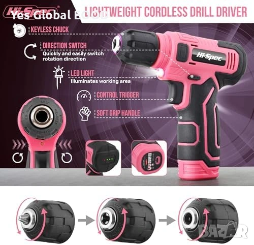 Hi-Spec 8V Акумулаторна бормашина 110ч. (Розова)