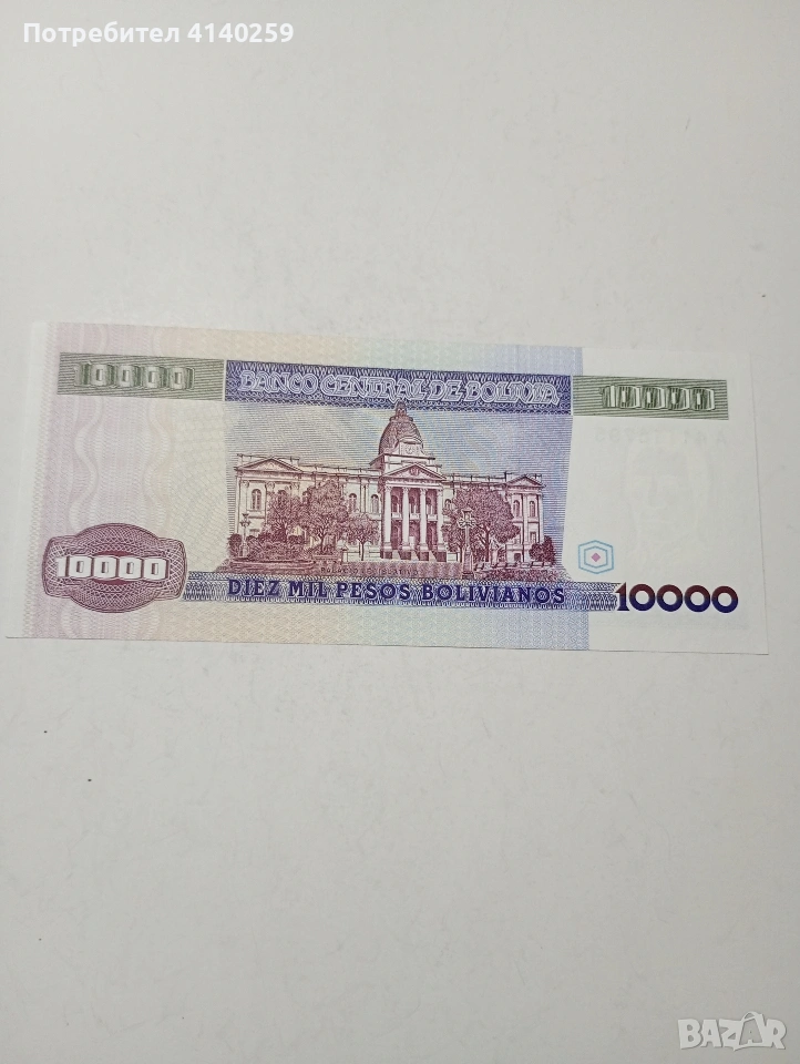 БОЛИВИЯ БАНКНОТА 10,000 ПЕСОС 1984 Г СЪСТОЯНИЕ НОВО ПОЛУЧАВАТЕ СНИМАНАТА БАНКНОТА РАЗГЛЕДАЙТЕ ДРУГИТЕ МИ ОБЯВИ ДА КОМБИНИРАТЕ ДОСТАВКА ЕКОНТ ЗА ВАРНА ЛИЧНО