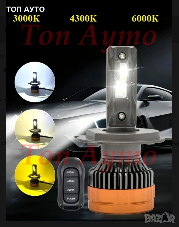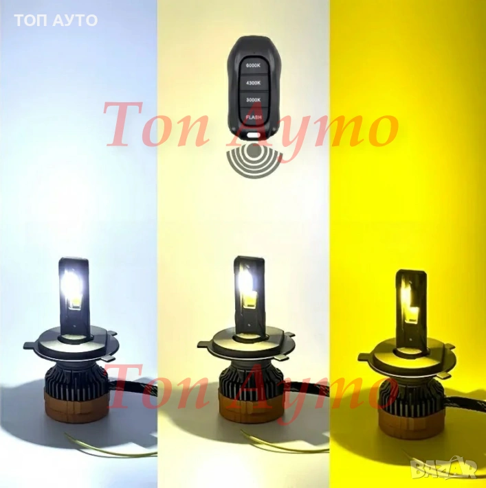 Лед Крушки Три Цвята Canbus С Дистанционно 3000К 4300К 6000К Н7 Н1 Н4 Н11 НВ3 НВ4